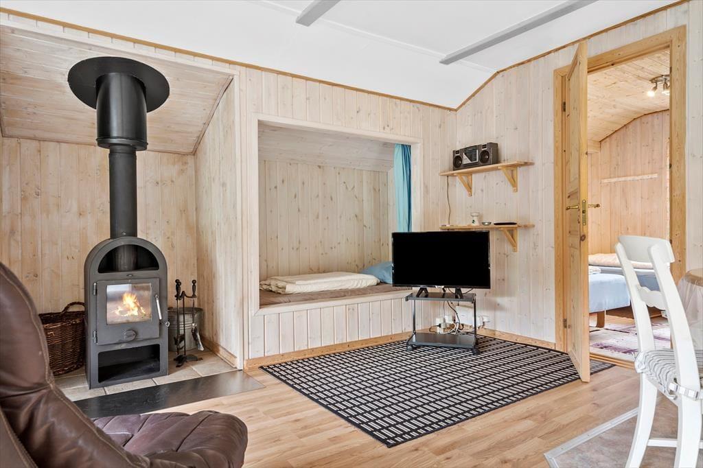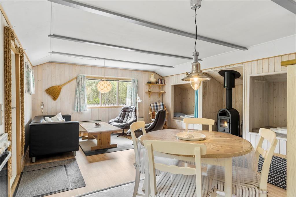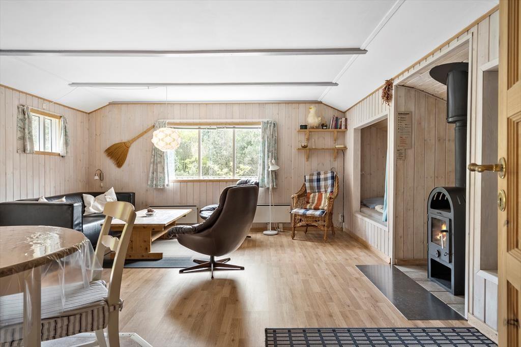 Das im Jahr 1975 erbaute Ferienhaus wurde über die Jahre hinweg gehegt und gepflegt und lädt zu richtig gemütlichen Urlaubstagen ein. Zu den modernen Annehmlichkeiten zählen unter anderem schnelles WiFi und ein im Wohnraum platzierter Flachbild-TV mit Parabolempfang. Für ein gemütliches Ambiente sorgt der Kaminofen, vor dem Sie in aller Ruhe ein Buch lesen oder eine Runde Karten spielen können. Ihre Mahlzeiten bereiten Sie in der offenen Küche zu, vor der der Esstisch platziert ist. Nach einem guten Mittagessen können Sie sich entspannt auf dem Sofa niederlassen oder sich ein Nickerchen in einer der gemütlichen Schlafnischen des Wohnraums gönnen. Vom Schlafraum des Hauses gelangen Sie in ein helles, funktionell eingerichtetes Badezimmer.