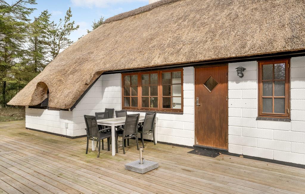 Attraktives Ferienhaus mit Reetdach, Kaminofen und Garten nahe dem Strand in Søndervig, ideal für erholsame Urlaubstage in der Natur.