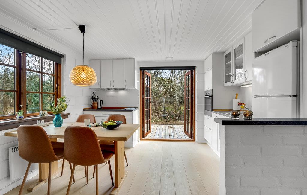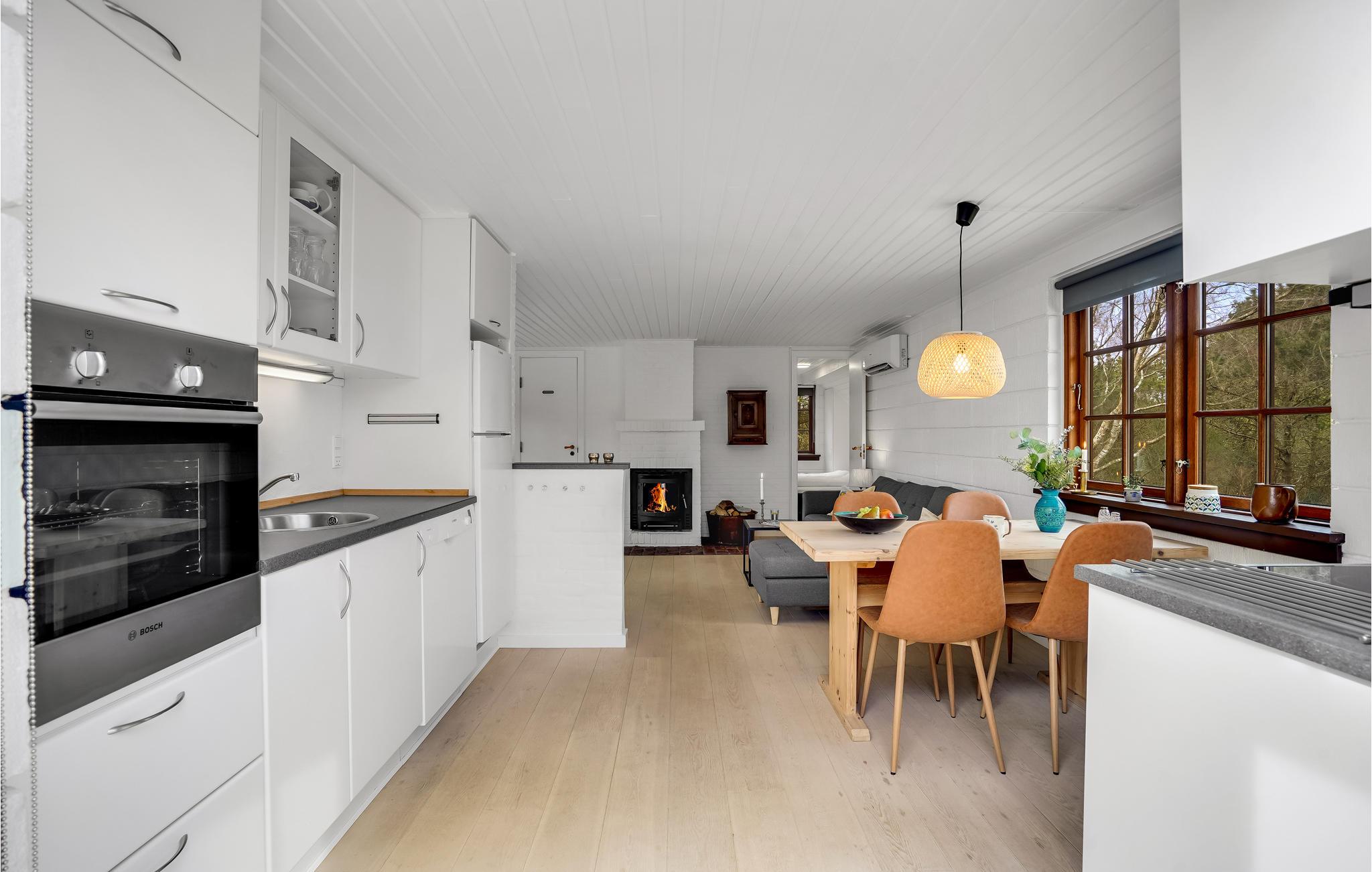 Die geschmackvolle Einrichtung mit modernen Möbeln schafft eine behagliche Wohlfühlatmosphäre in den hellen Räumen dieses komfortablen Hauses mit charmantem Reetdach. Genießen Sie die gemeinsamen Mahlzeiten mit Blick in den Garten, entspannen Sie in stilvollem Ambiente und lassen Sie die Hektik des Alltags hinter sich. Abends machen Sie es sich auf dem einladenden Sofa gemütlich, spielen Spiele, sehen einen Film oder plaudern bis spät in den Abend am behaglich knisternden Kaminofen.
