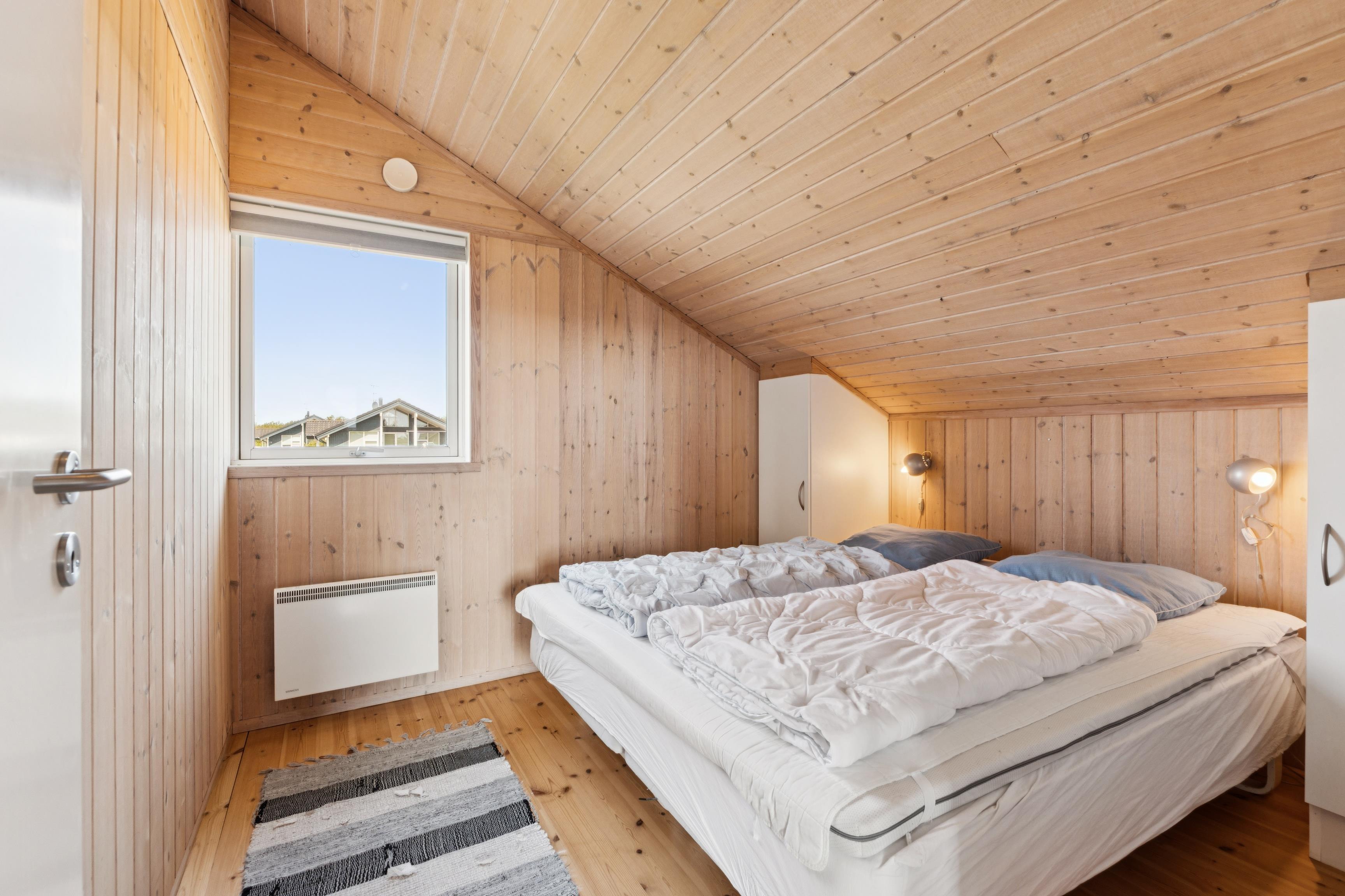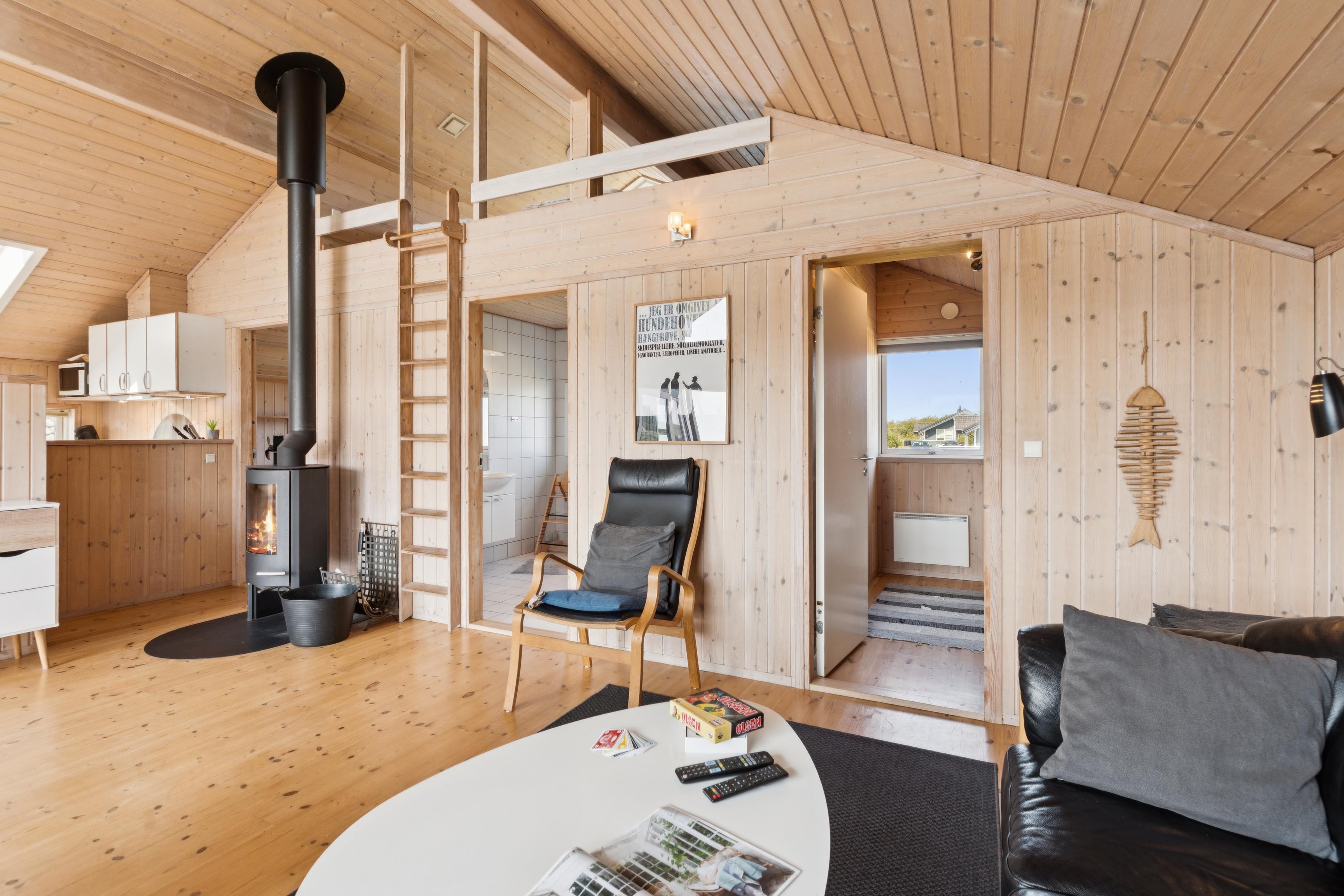 Dieses gemütliche 70 m² Ferienhaus mit Whirlpool und Sauna liegt in der landschaftlich reizvollen Lodbjerg-Hede - nur einen Steinwurf vom Angelsee Lodbjerg Hede Ørredsø entfernt. Große Fenster, die viel Tageslicht hereinlassen schaffen eine helle und einladende Atmosphäre. Das Haus ist innen komplett mit Naturholz verkleidet und vom Essbereich aus habt ihr einen fantastischen Blick über die westjütländische Landschaft.