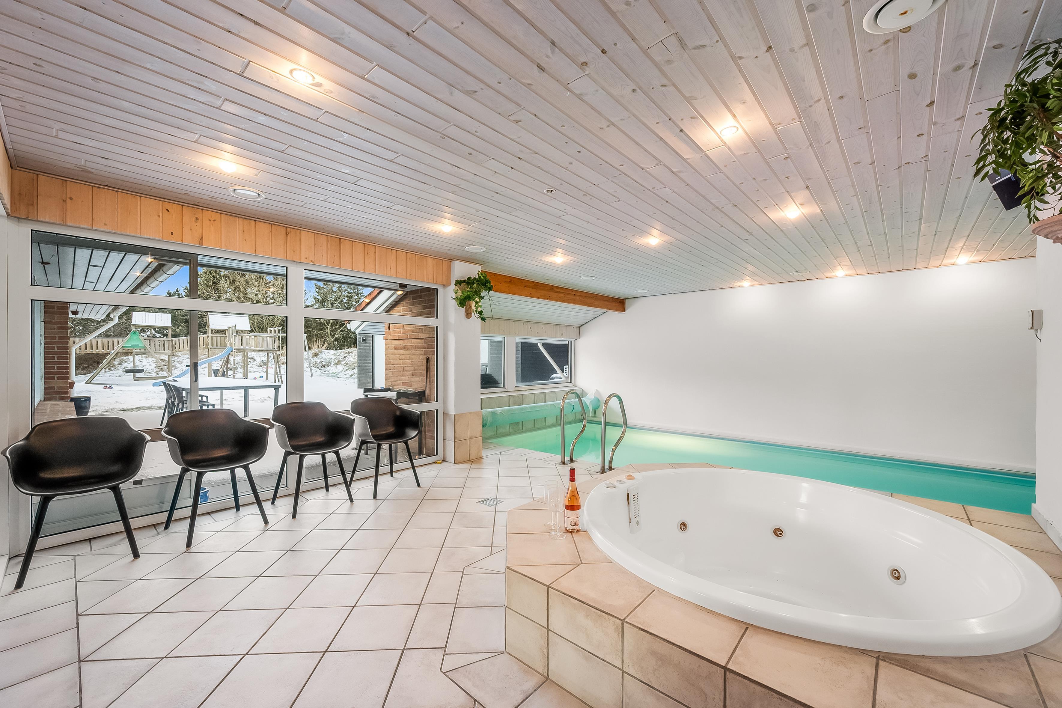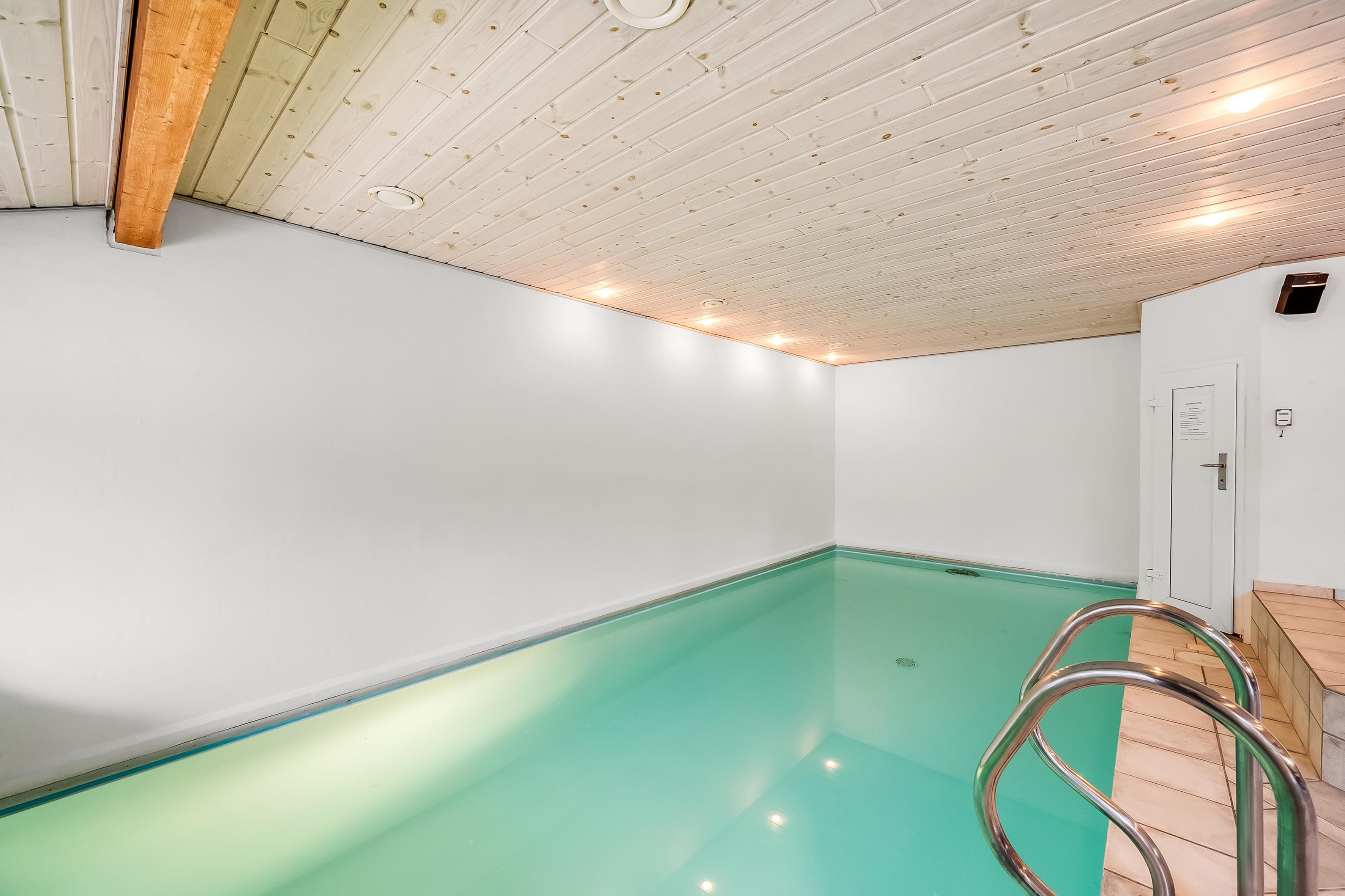 Das beeindruckende Highlight ist der große Innenpool, begleitet von einem 5-Personen-Whirlpool und einer Sauna - der perfekte Ort zum Entspannen und Aufladen, nach einem Tag voller Aktivitäten. Eine energieeffiziente Wärmepumpe sorgt dafür, dass der Poolbereich das ganze Jahr über genutzt werden kann.