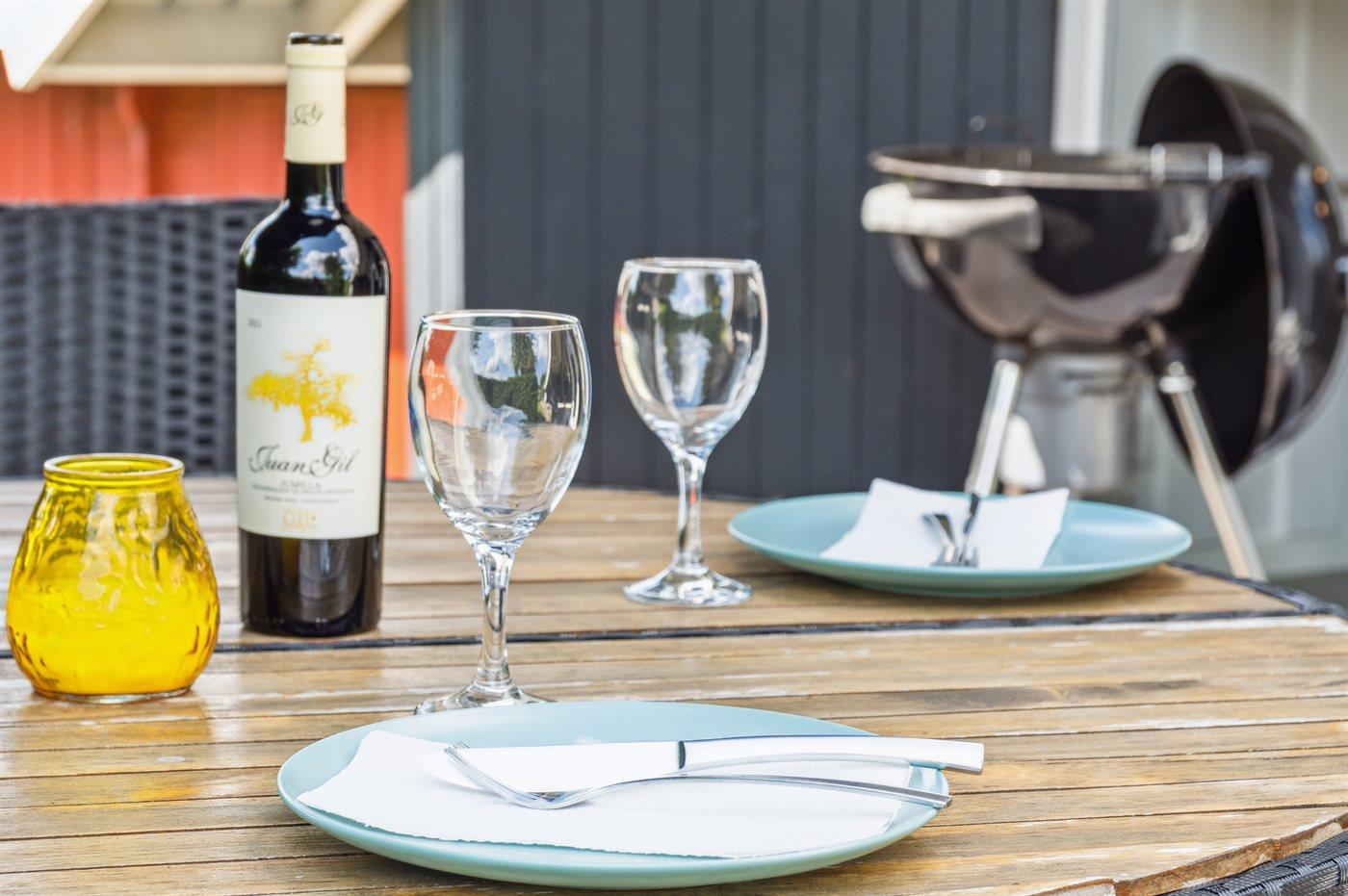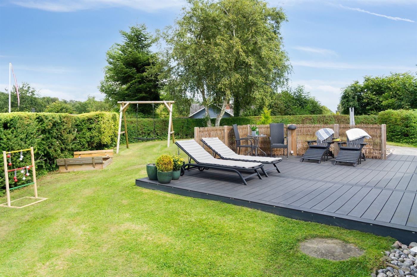 Die Ferienunterkunft liegt auf einem 900 m² großen Gartengrundstück. Die Entfernung zum Meer beträgt 800 m. Es gibt einen Badesteg in der Nähe. Die nächste Einkaufsmöglichkeit liegt 5000 m entfernt. In einem Abstand von 5000 m gibt es einen Golfplatz. Es steht ein offenes Terrassenareal zur Verfügung. Außerdem gibt es überdachte Terrasse. Geräteraum. Schaukel. Sandkasten. Es steht ein Grill zur Verfügung. Parkplatz auf dem Grundstück.