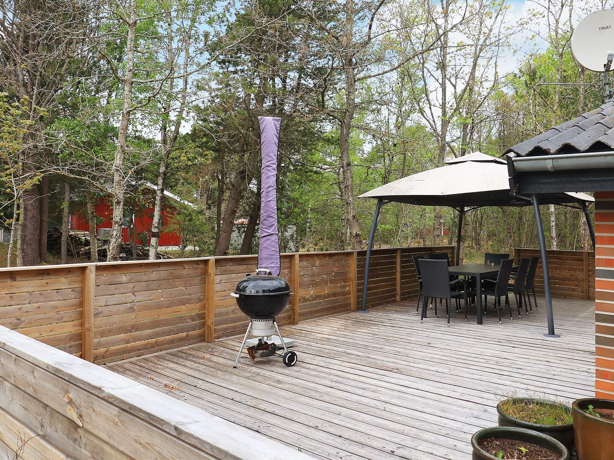 Im Außenbereich stehen Gartenmöbel und Sonnenschirme für die sonnigen Tage bereit. Das Haus liegt auf einem attraktiven Naturgrundstück im Anschluss an eine große Gemeinschaftsfläche mit Dünenvegetation und Sand. Auf dem Grundstück findet man windgeschützte Ecken mit Ausblick zur faszinierenden Naturlandschaft ringsum.