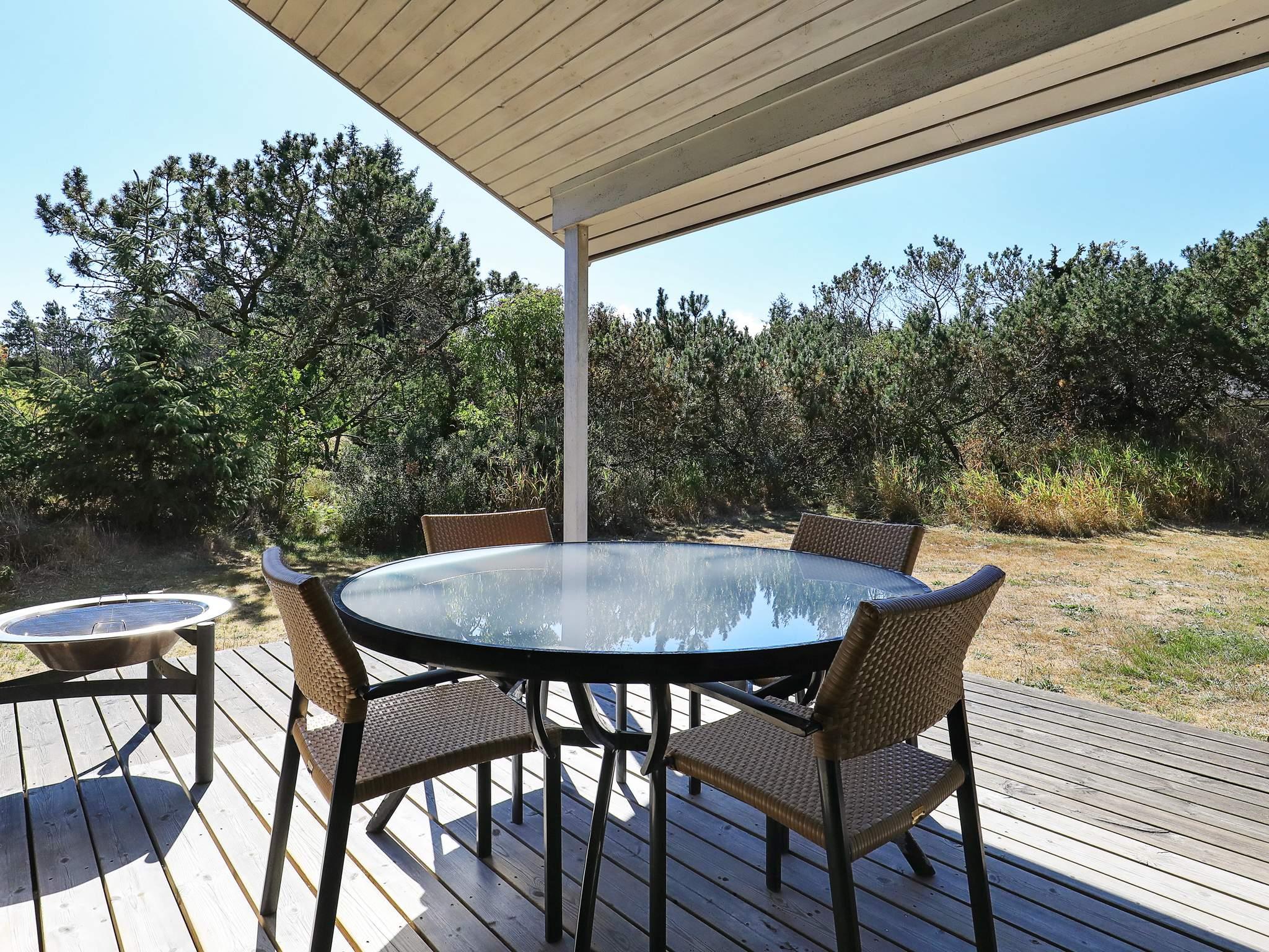 Dieses Ferienhaus liegt am Ende einer Sackgasse in ruhiger Umgebung nahe des Golfplatzes Hvide Klit. Das eine Schlafzimmer mit eigenem Bad hat Eingang über die Terrasse. Überdachte und offene Terrasse, mit sonnigen und windgeschützten Ecken. Geschmackvolle Einrichtung mit vielen Details wie z.B. Bad mit Dampfkabine, Küche mit amerikanischem Kühl-/Gefrierschrank.
