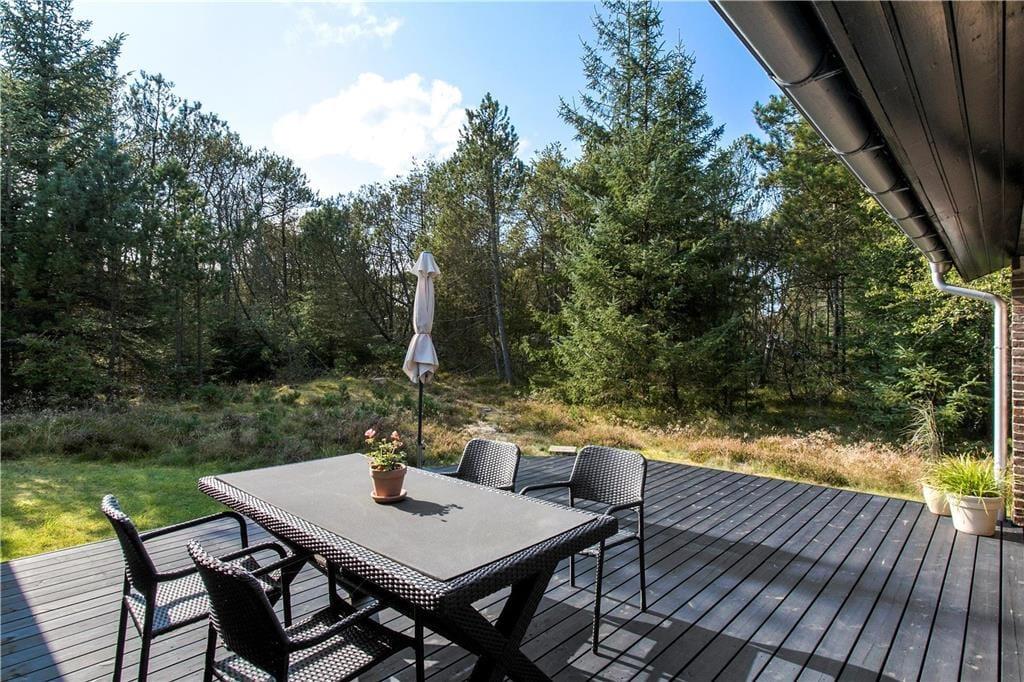 Die Terrasse des Ferienhauses lädt dazu ein, den ganzen Tag im Freien zu verbringen. Genießen Sie Ihren Morgenkaffee in der Sonne, versammeln Sie die Familie zum Mittagessen unter freiem Himmel oder grillen Sie das Abendessen an den langen Sommerabenden. Der Außenbereich ist von schöner Natur umgeben und bietet Platz für Entspannung und Spiel – ob die Kinder herumtoben oder die Erwachsenen die friedliche Atmosphäre genießen.