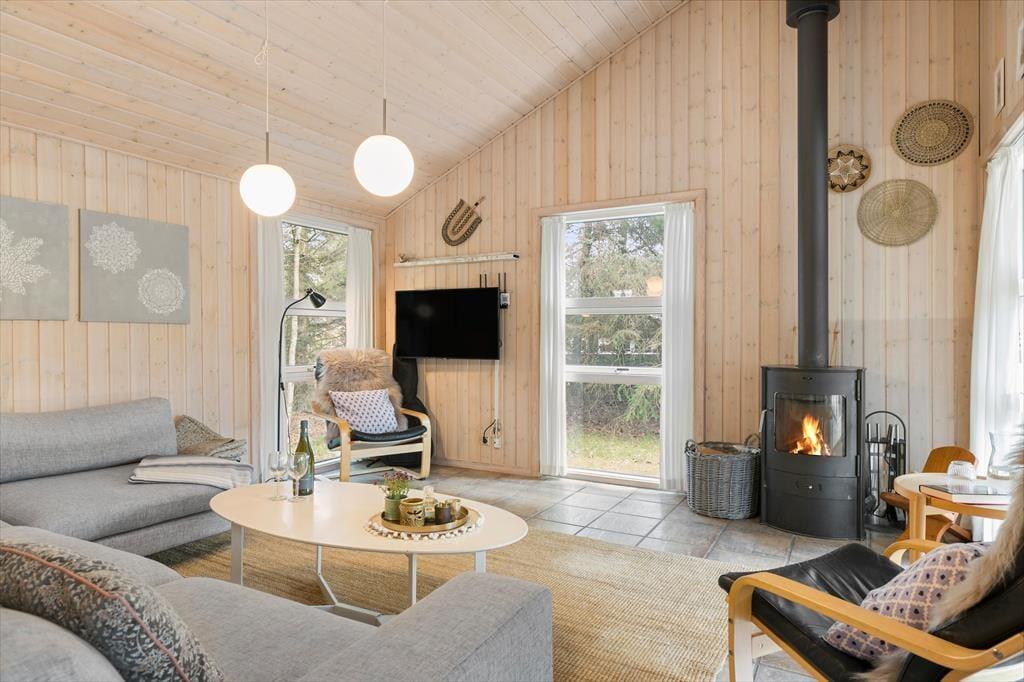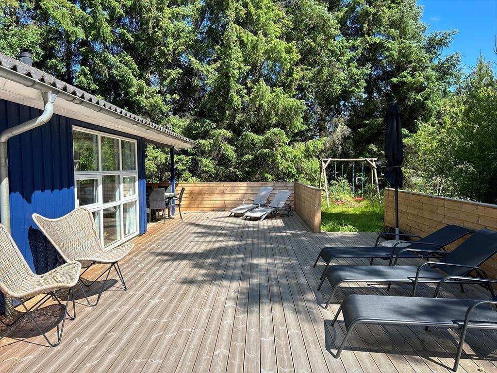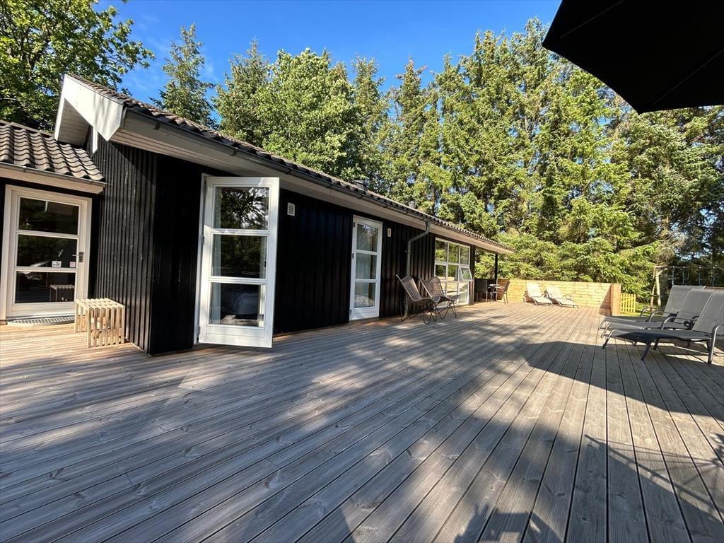 Von vier Schlafzimmern aus haben Sie direkten Zugang zu den Außenbereichen, sodass Sie gleich nach dem Aufwachen die frische Luft genießen und den Vogelgesang hören können. Eine große Holzterrasse nach Süden bietet sowohl überdachte als auch offene Bereiche, sodass Sie immer einen schönen Platz in der Sonne finden. Der Rasen ist perfekt für Spiele und Ballspiele, und es gibt auch eine Schaukel für die Kinder. Während die Kleinsten spielen, können die Erwachsenen eine weitere Tasse Kaffee auf der Terrasse genießen, bevor es Zeit für einen Ausflug ist. Bis zu zwei Hunde sind im Ferienhaus willkommen. Es gibt einen größeren, separaten eingezäunten Bereich sowie einen Hundegarten von ca. 60 m², in dem die Hunde sicher frei herumlaufen können. Draußen können Sie sich auch am Lagerfeuer versammeln und gemütliche Abende mit Stockbrot und Zusammensein genießen.