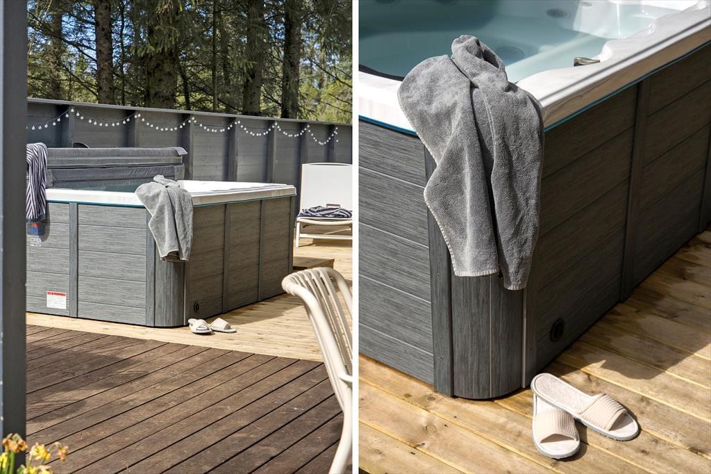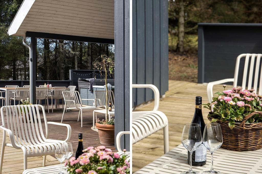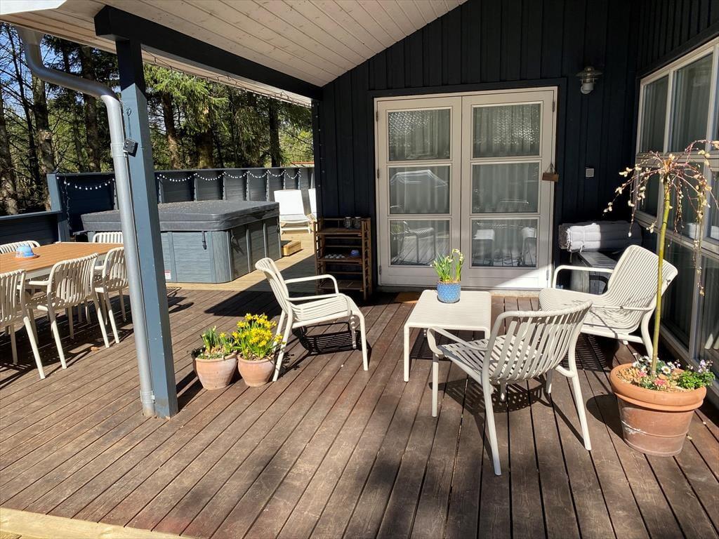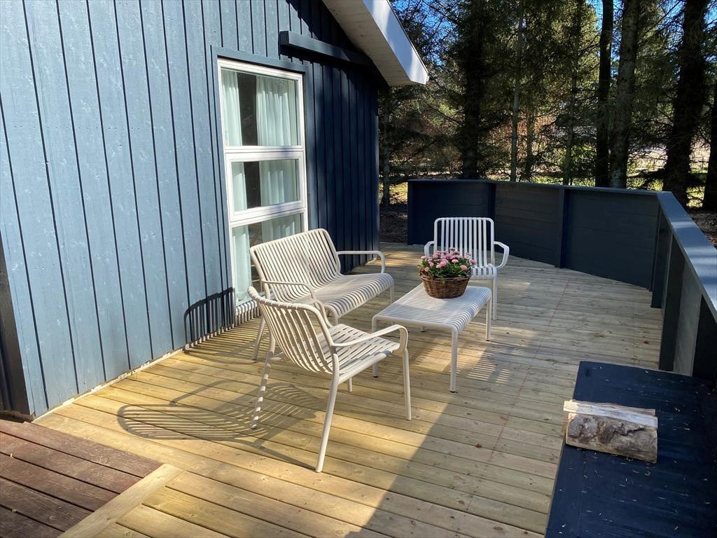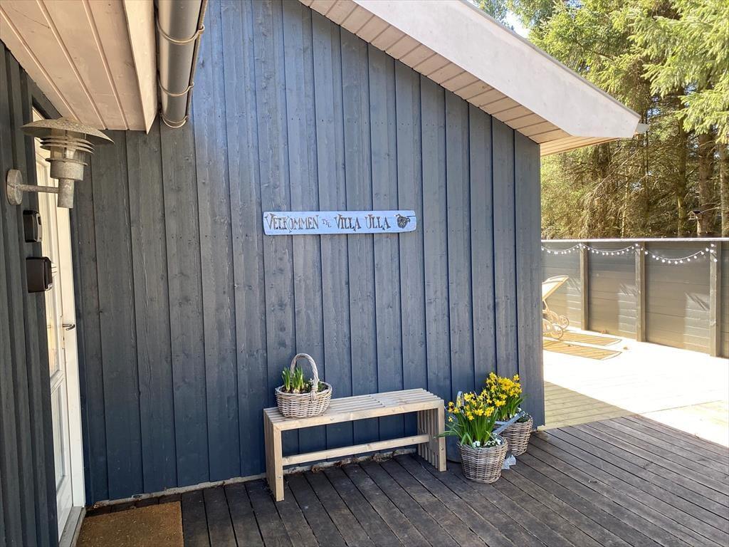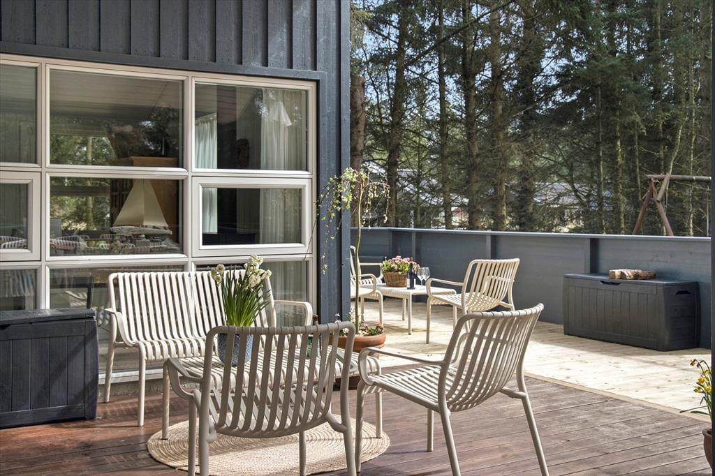 Das wunderschöne Außenbereich des Ferienhauses lädt zu Entspannung und Aktivitäten ein. Die geschlossene Terrasse bietet dir einen privaten Bereich, um deinen Morgenkaffee zu genießen, ein leckeres Abendessen zu grillen oder einfach die Kinder in sicherer Umgebung spielen zu lassen. Der Garten ist mit einer großen Rasenfläche ausgestattet, die zu Ballspielen und anderen Aktivitäten einlädt, und für deine vierbeinigen Familienmitglieder gibt es einen eingezäunten Bereich, wo sie sich frei bewegen können. Dank der Ausgänge von mehreren Zimmern kannst du jederzeit die schöne Natur direkt vor der Haustür genießen.