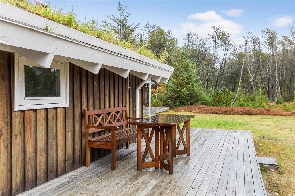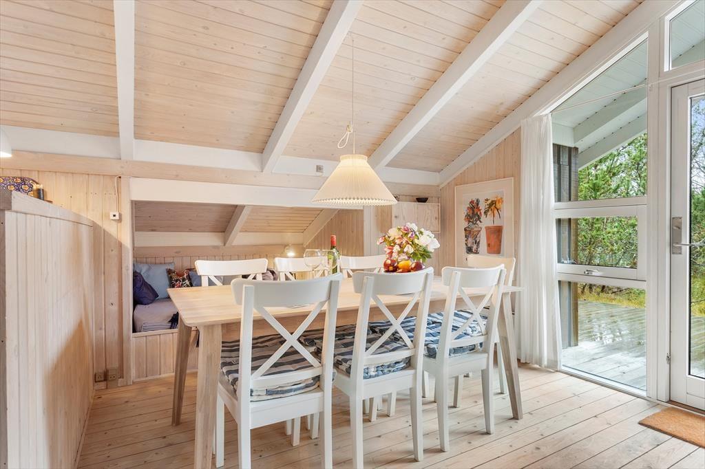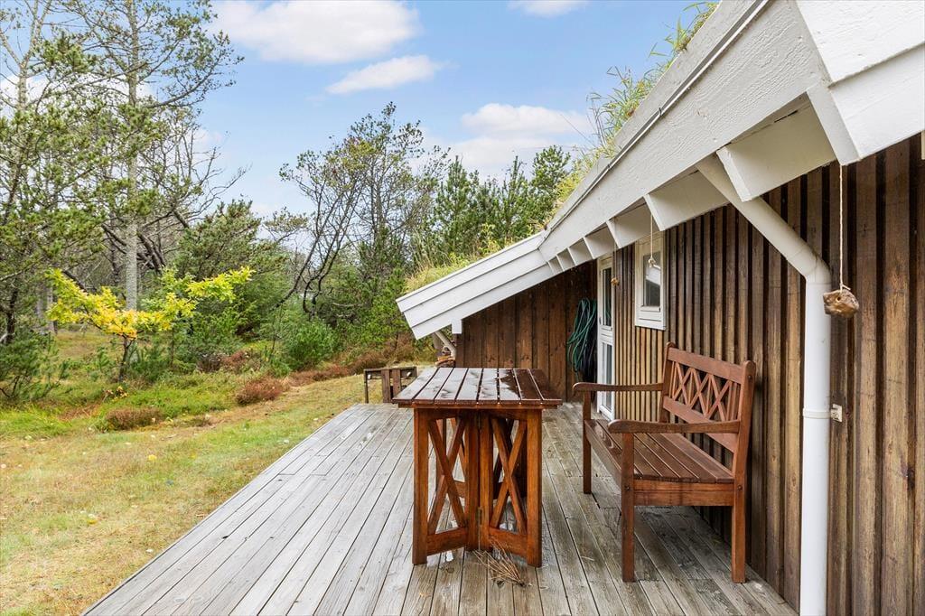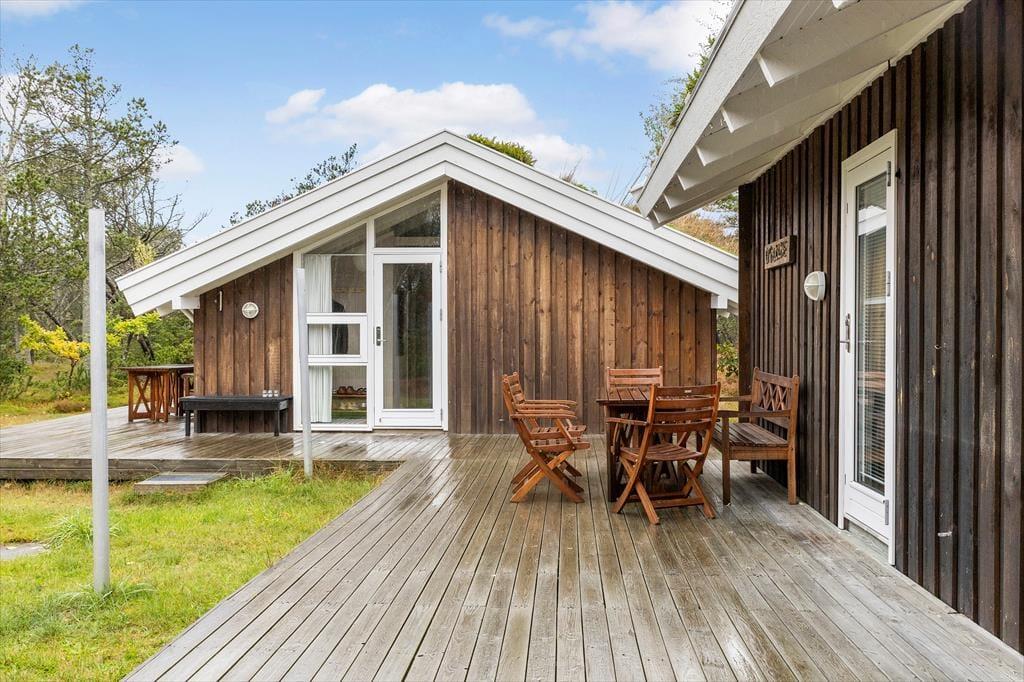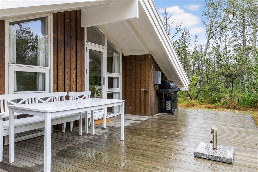 Auf dem großen, wunderschönen Naturgrundstück erleben Sie die nordjütische Landschaft hautnah. Weiches Heidekraut, typische Bepflanzung und ein reiches Vogel- und Tierleben schaffen eine ganz besondere Atmosphäre, in der Sie zur Ruhe kommen können. Das Ferienhaus liegt diskret am Ende einer kleinen Sackgasse – hier sind Ruhe und Privatsphäre garantiert. Auf den großzügigen Terrassen können Sie den ganzen Tag über die Sonne genießen: Beginnen Sie den Morgen mit einer Tasse Kaffee an der frischen Luft, essen Sie mittags im Freien und beenden Sie den Tag mit einem leckeren Grillabend, während Sie dem Zwitschern der Vögel lauschen. Die Umgebung lädt zu Spiel und Entspannung gleichermaßen ein – ob beim Hüttenbauen mit den Kindern oder beim Beobachten der Tiere ringsum.