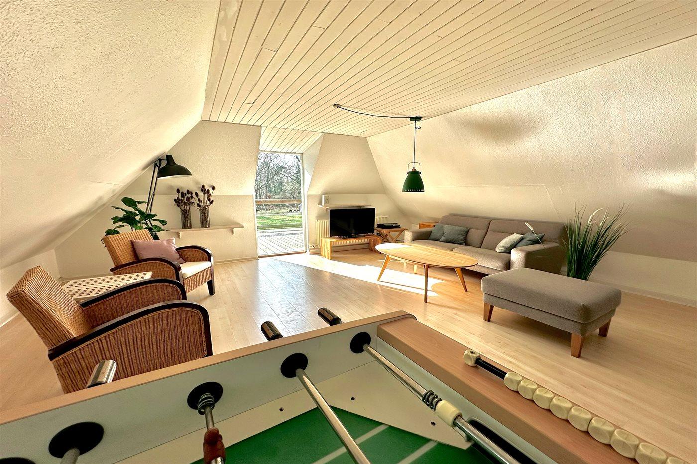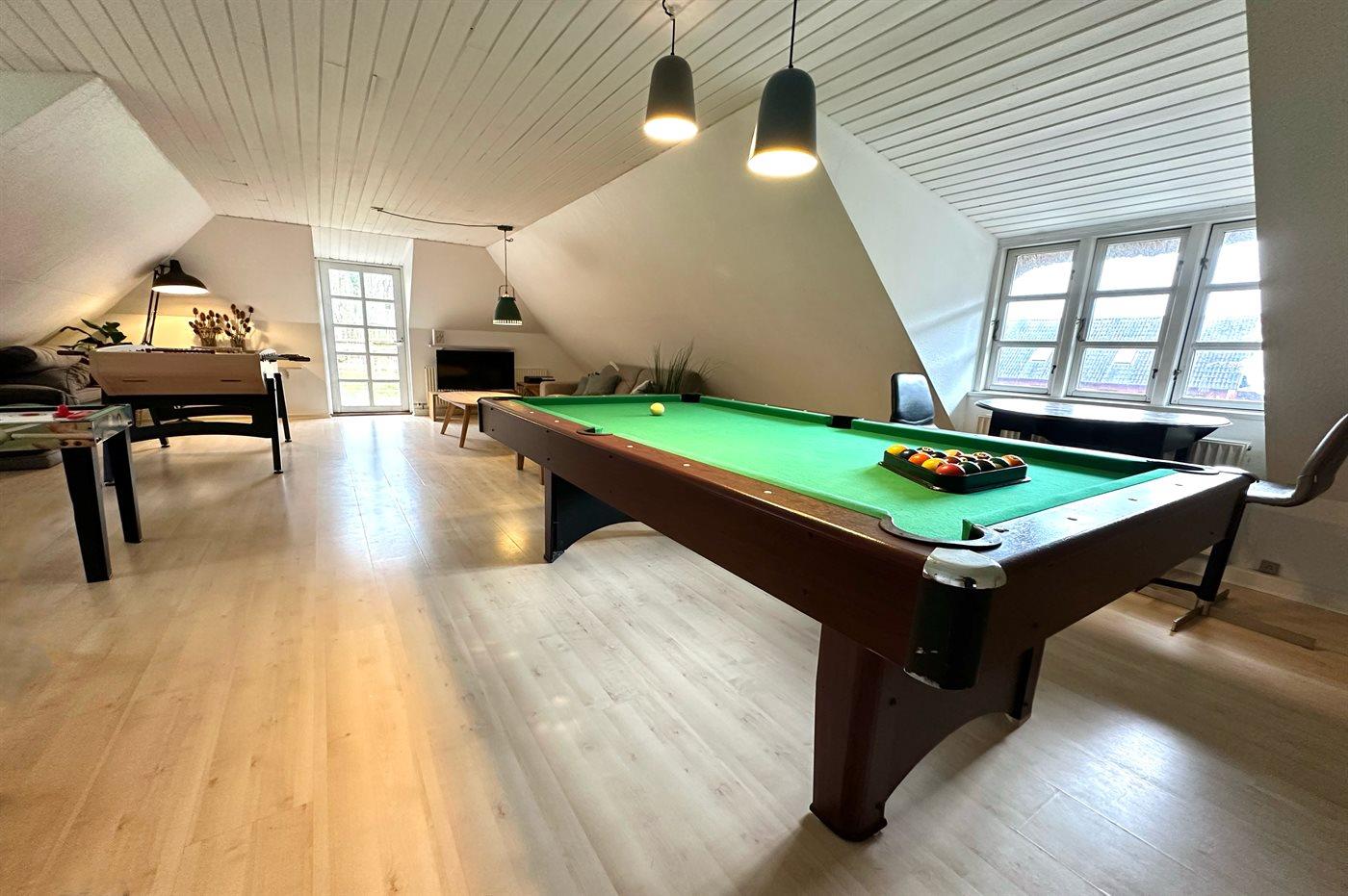 Hobbyraum mit: Pooltisch. Tischfußball.