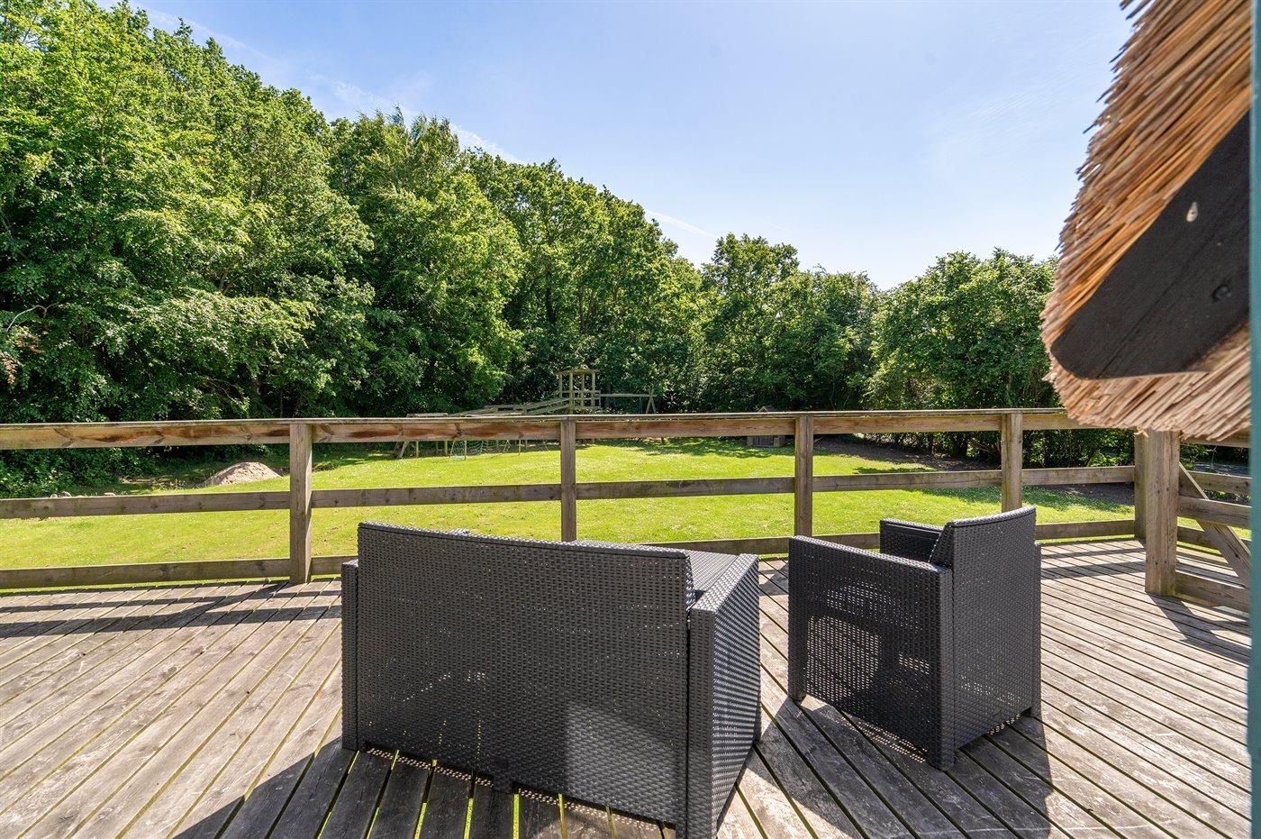 Die Ferienunterkunft liegt auf einem 2103 m² großen Naturgrundstück. Die Entfernung zum Meer beträgt 320 m. Die nächste Einkaufsmöglichkeit liegt 1500 m entfernt. Es steht ein offenes Terrassenareal zur Verfügung.Balkon im Obergeschoss. Schaukel. Sandkasten. Kinderspielhaus. Spielturm. Fußballtor. Die Entfernung zu einem Spielplatz beträgt 1000 m.Lagerfeuerstelle. Es steht ein Grill zur Verfügung. Parkplatz auf dem Grundstück.