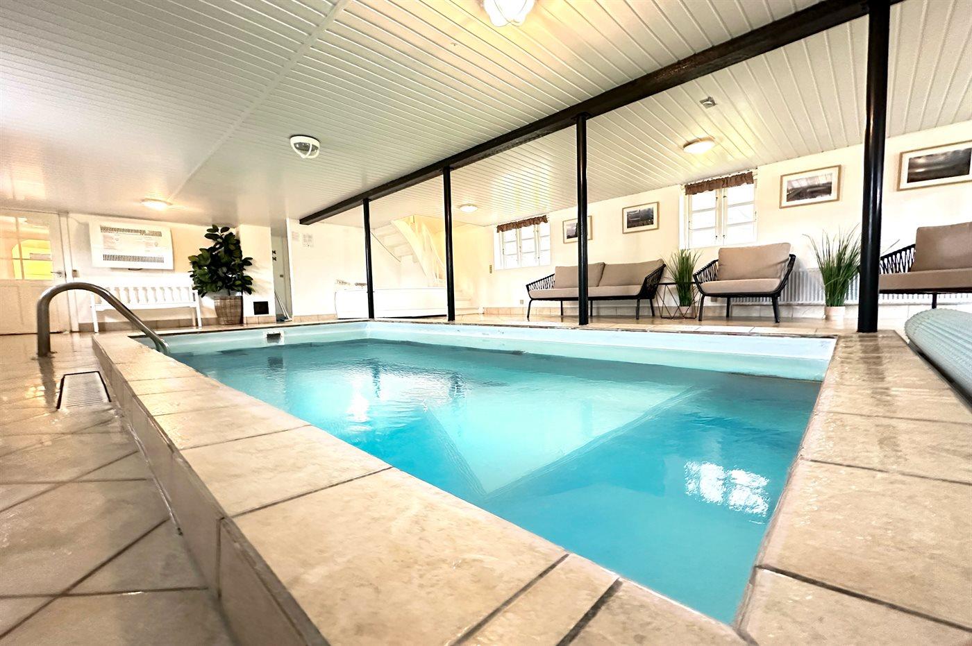 Entspannen Sie sich im Innen-Durchlauf-Whirlpool für 4 Personen. Es gibt ein Spa für 2 Personen im Poolbereich und ein Spa für 2 Personen in einem Badedzimmer.