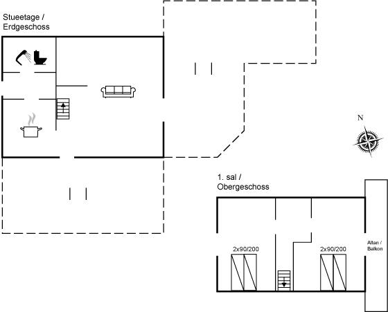 Die Schlafplätze verteilen sich auf 2 Schlafräume. 4 Schlafplätze in Einzelbetten. Ferner steht ein Kinderbett zur Verfügung.