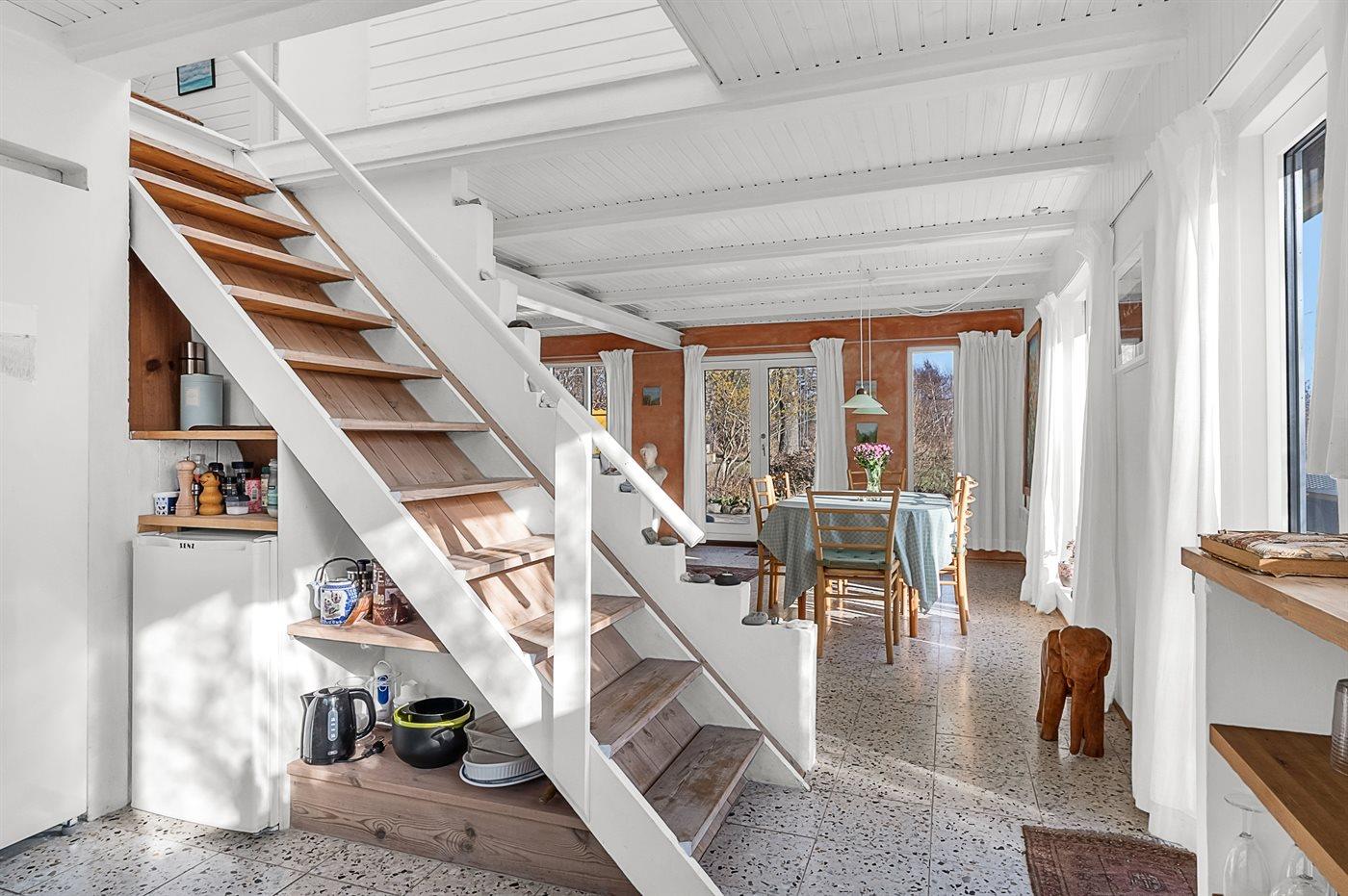 Das Haus ist gemütlich eingerichtet mit Wohnzimmer, Küche und Badezimmer im Erdgeschoss sowie Schlafzimmern im Obergeschoss, wo sich auch ein überdachter Balkon befindet.