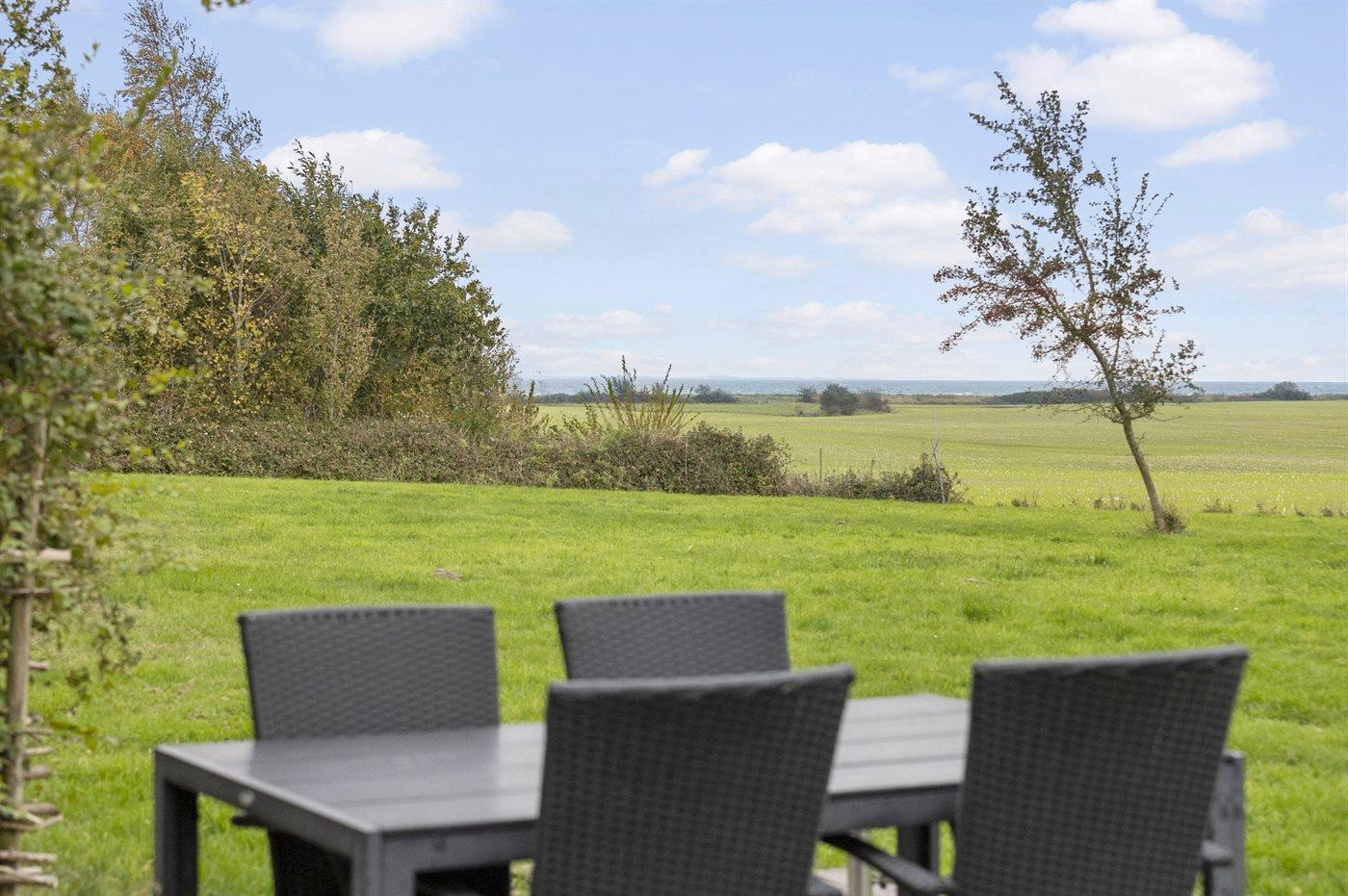 Gemütliches Ferienhaus mit Meerblick, großem Garten und privatem Strandzugang in ruhiger Lage in Rudkøbing.