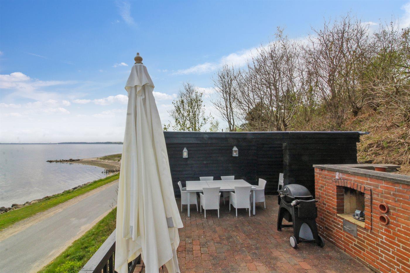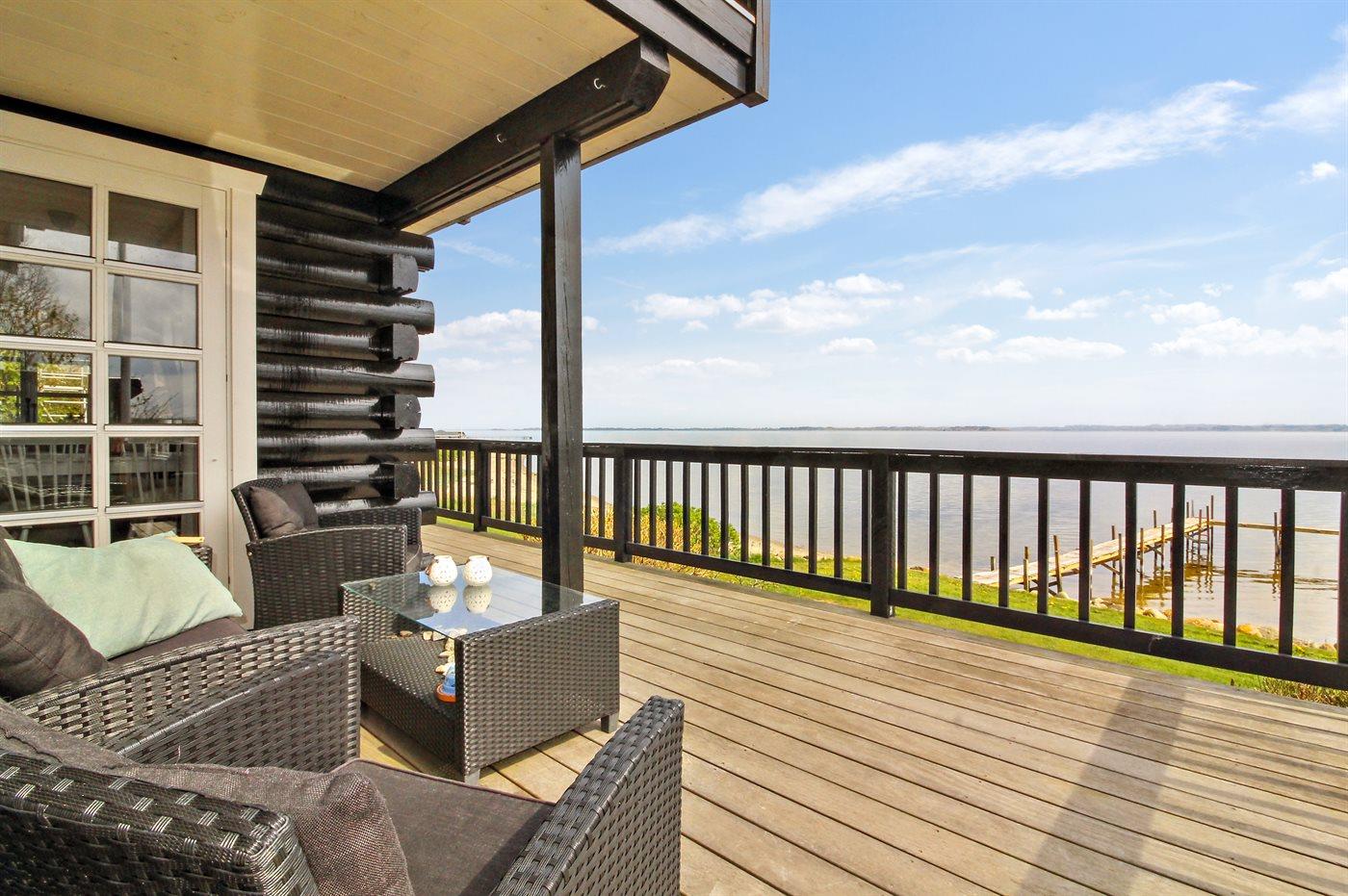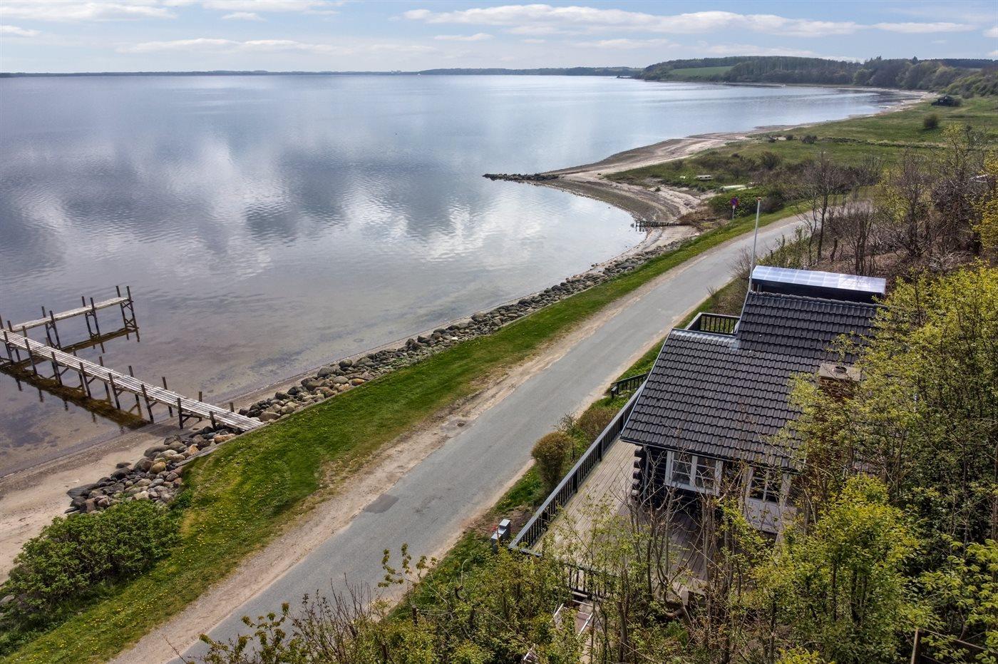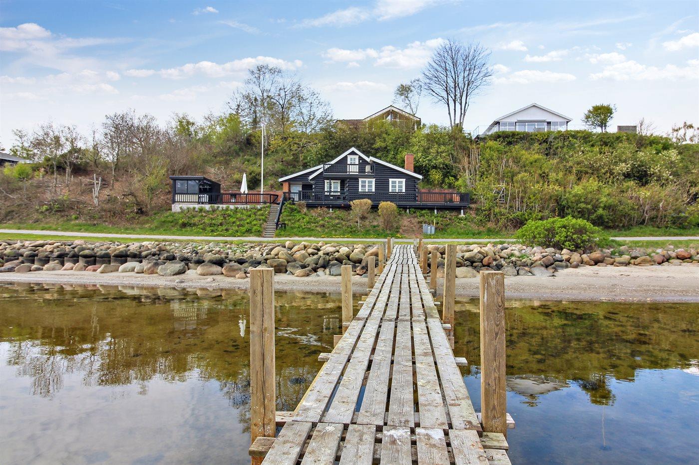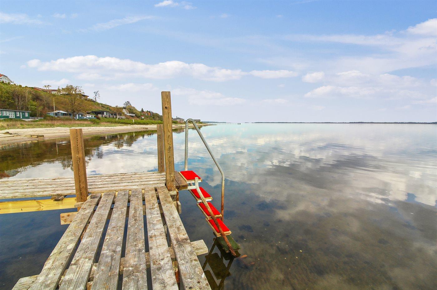 Charmantes Ferienhaus in Roslev mit Fjordblick und eigenem Badesteg für entspannte Tage am Wasser.