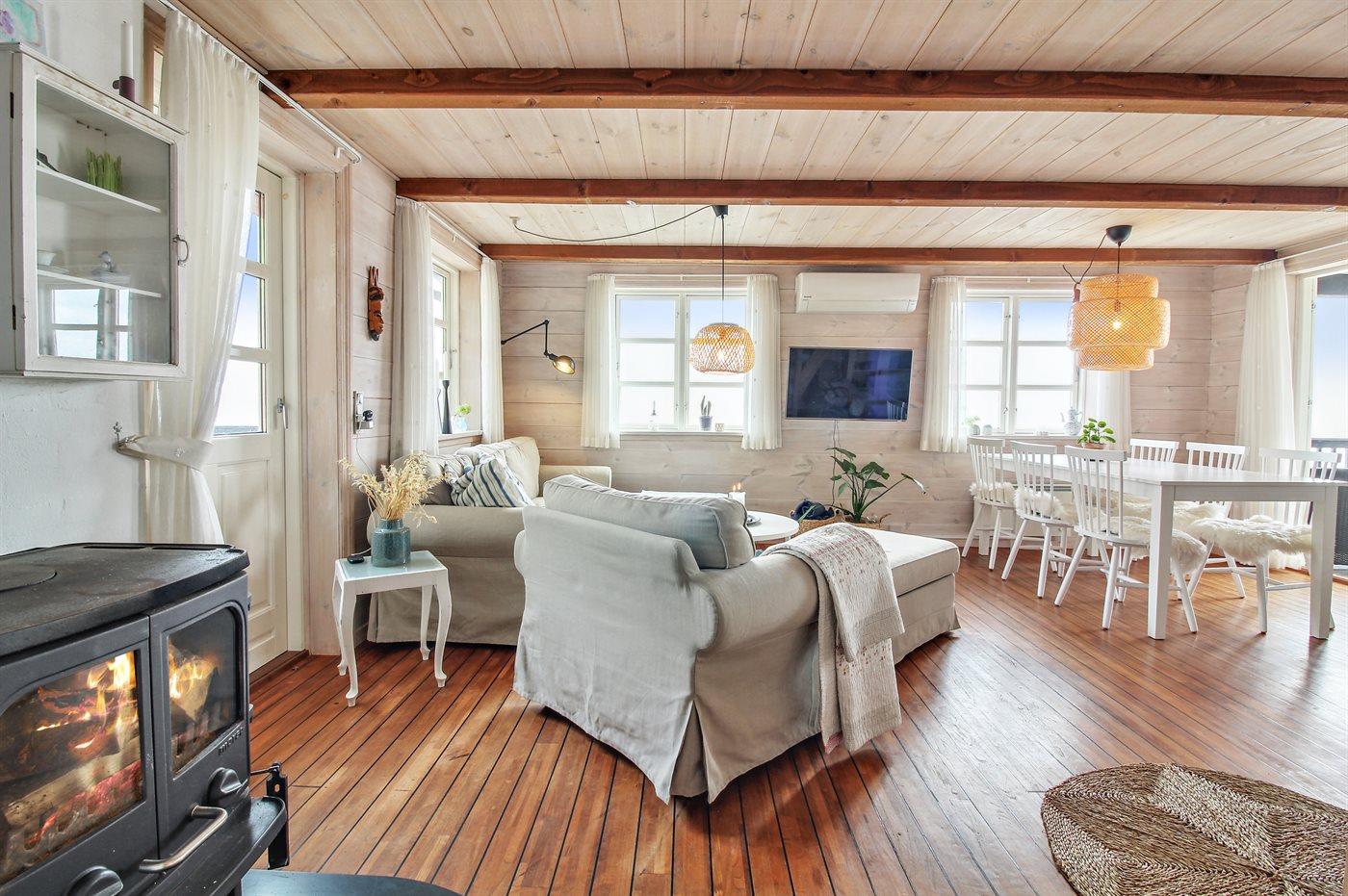 Die Ferienunterkunft liegt auf einem 1600 m² großen Naturgrundstück. Die Entfernung zum Fjord beträgt 10 m. Die nächste Einkaufsmöglichkeit liegt 5000 m entfernt. In einem Abstand von 10000 m gibt es einen Golfplatz. Es steht ein offenes Terrassenareal zur Verfügung. Außerdem gibt es überdachte Terrasse. Es steht ein Grill zur Verfügung. Parkplatz auf dem Grundstück.