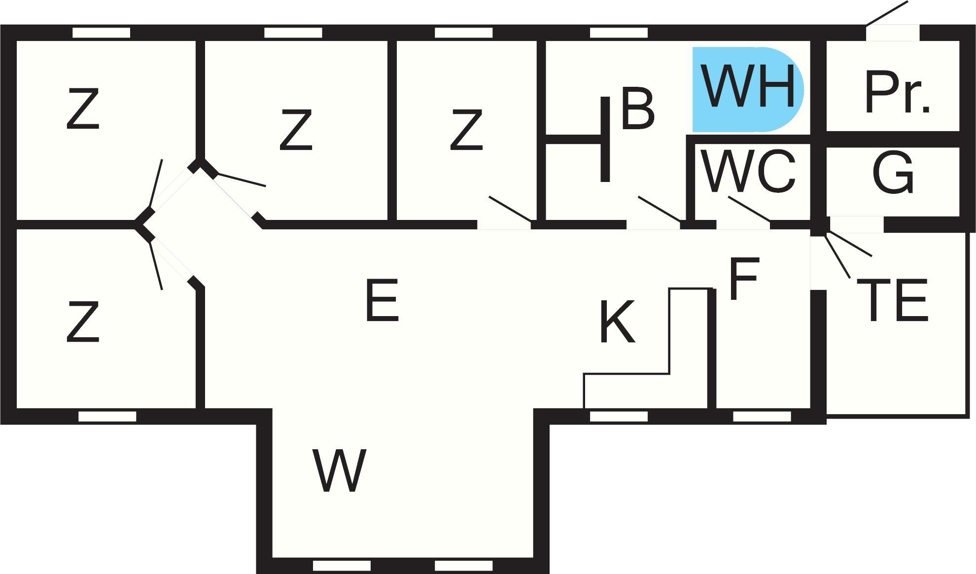 Das Ferienhaus hat einen kombinierten Aufenthalts- und Küchenbereich, vier Schlafzimmer sowie ein Bad mit Whirlpool und eineGästetoilette. Außerdem sind u.a. ein praktischer Hauswirtschaftsraum mit Waschmaschine, Geschirrspüler, Holzofen und eine klimafreundliche Wärmepumpe im Haus vorhanden. Es wurde durchgehend hell und mit ansprechendem Mobiliar eingerichtet.