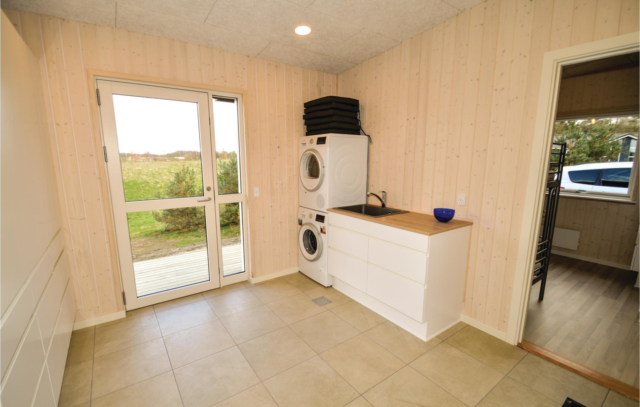 Schönes Ferienhaus aus hochwertigen Baumaterialien. Es wurde 2017 errichtet und genießt eine hervorragende Platzierung mit Aussicht auf eine Schlucht und hinunter auf den Hjarbæk Fjord. Die Einrichtung ist minimalistisch mit komfortablen Möbeln und durch die großen Fensterpartien fällt tagsüber viel Licht herein.