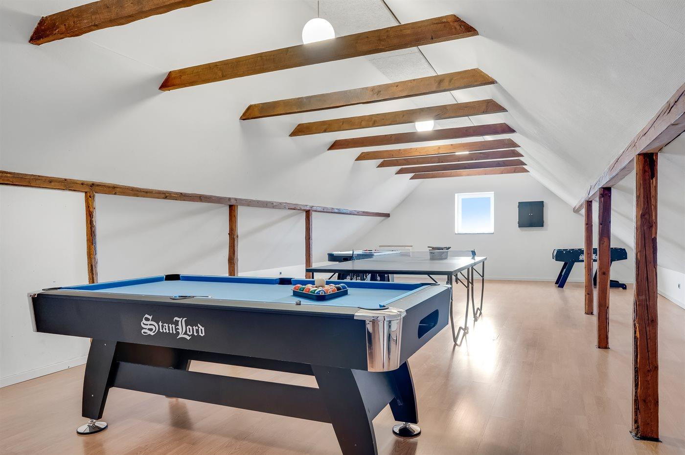 Hobbyraum mit: Pooltisch. Tischtennis. Dart. Airhockey. Tischfußball.