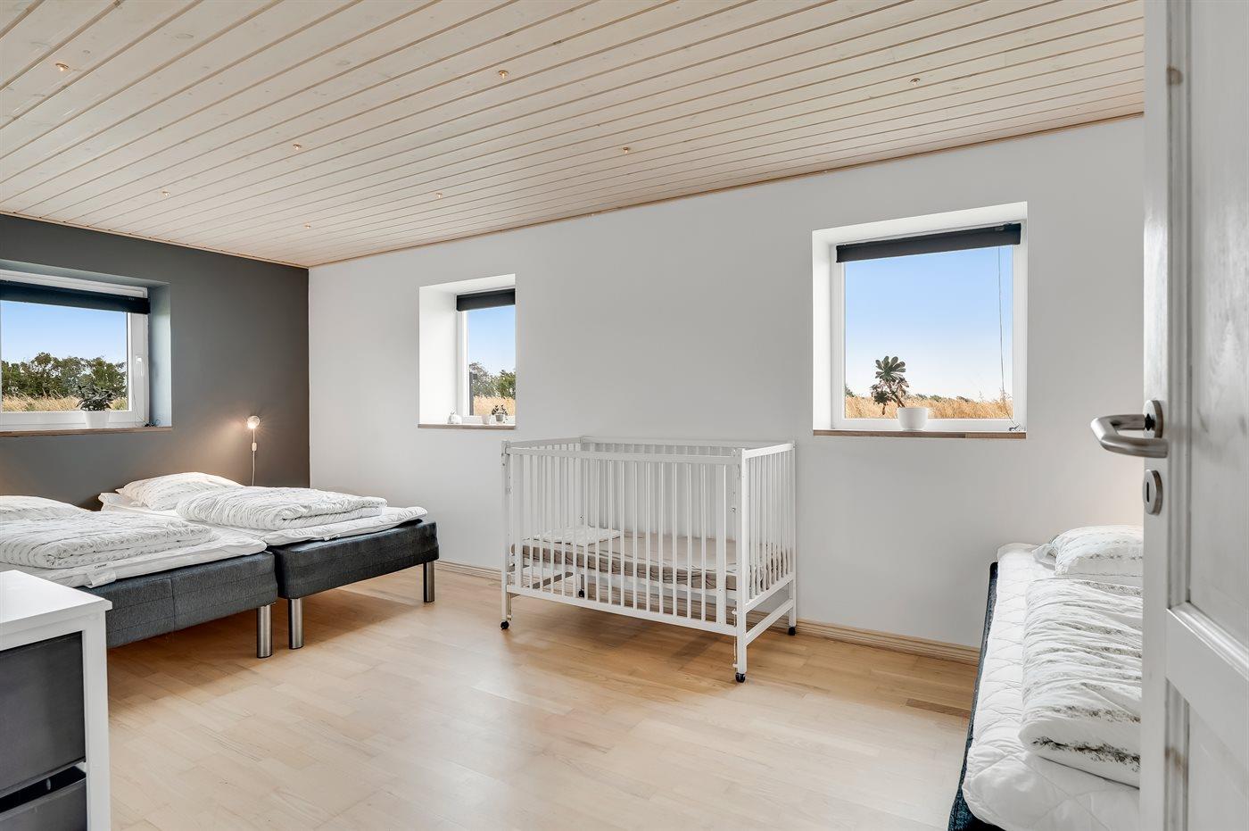Die Schlafplätze verteilen sich auf 5 Schlafräume. 2 Schlafplätze in einem Doppelbett. 10 Schlafplätze in Einzelbetten. 2 Schlafplätze in einem Etagenbett. Ferner stehen 2 Kinderbetten zur Verfügung.
