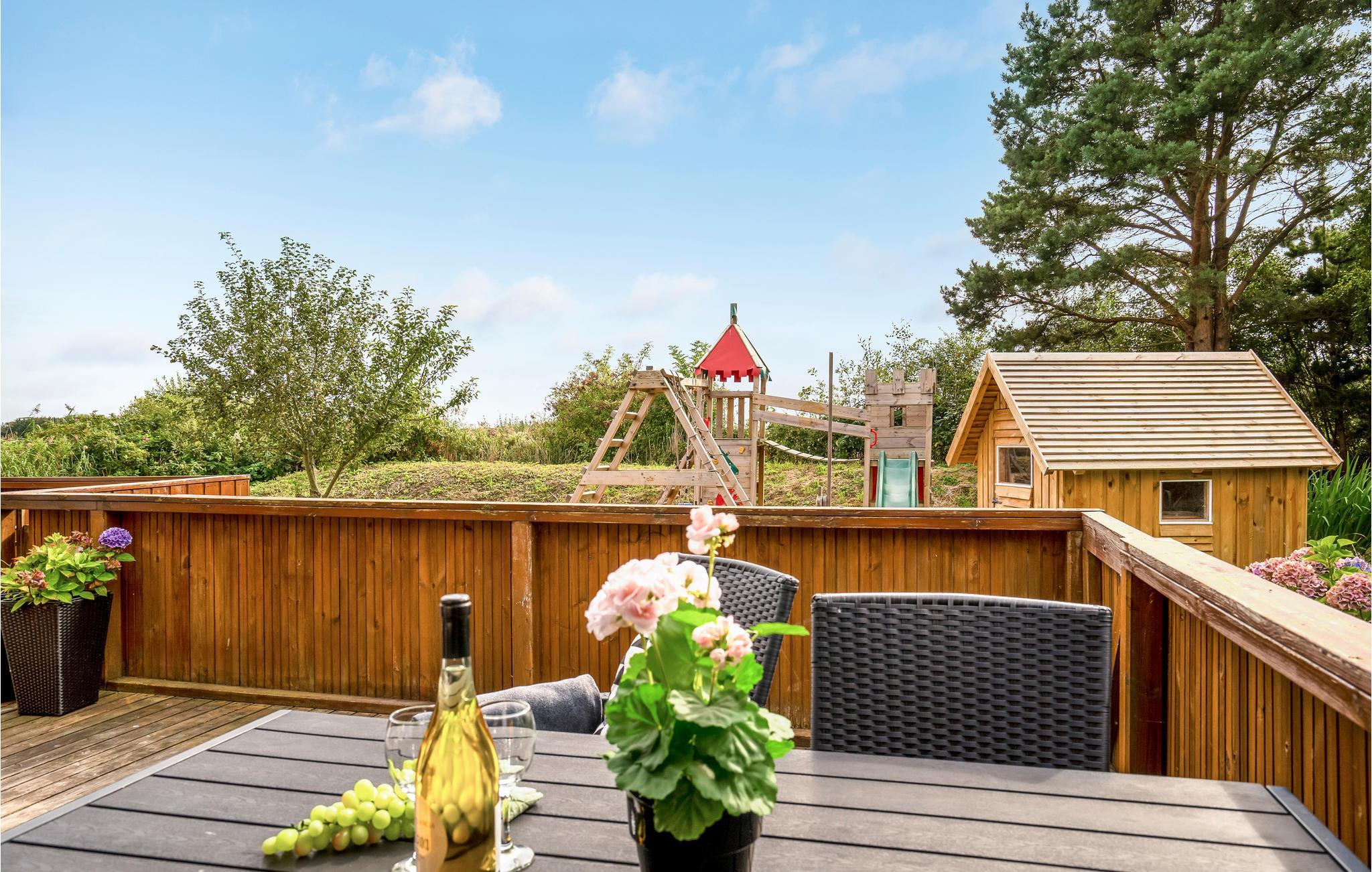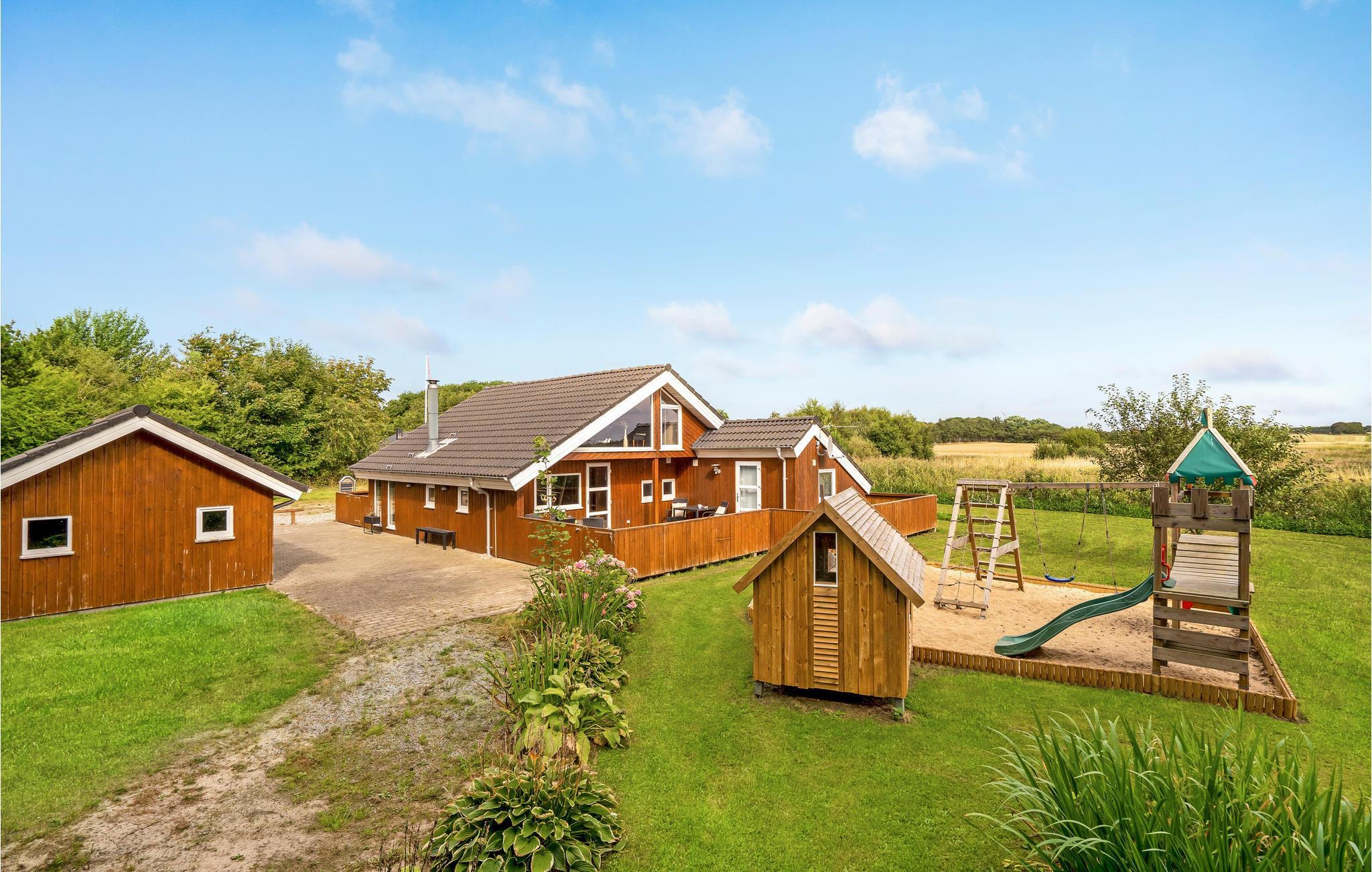 Sehr schönes Ferienhaus aus Holz auf einem teilweise bepflanzten Naturgrundstück in einer naturschönen Gegend. Es ist mit einer geräumigen Wohnstube mit offenem Gebälk eingerichtet. Ein großer, heller offener Schlafboden und eine Südwest-Terrasse mit Aussicht auf den Fjord sind vorhanden. Sie verfügen über viele Fernsehkanäle, auch TV2 Sport gehört dazu. Die schöne Küche ist mit dem Essplatz verbunden. Das hübsche Badezimmer ist mit einem schwarzen Klinkerboden, hellem Interieur, einem Whirlpool und einer Sauna eingerichtet. Ein leichtes Haus, das gut für einen Familienurlaub geeignet ist. In der Miete enthalten ist der freie Eintritt ins Hallenbad Sydthy Svømme- og Kurbad Hurup.