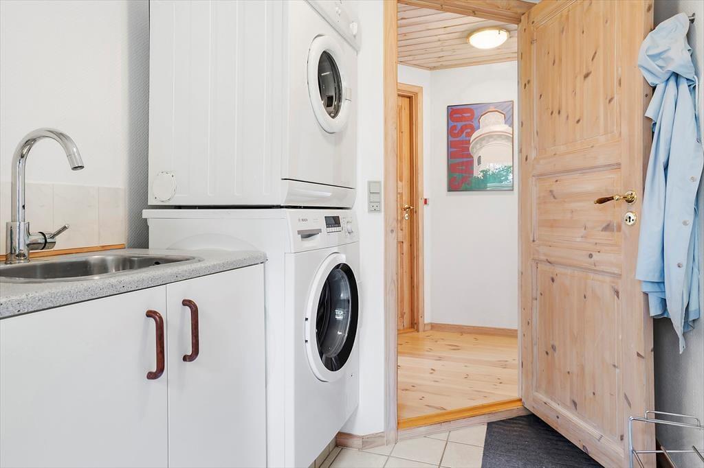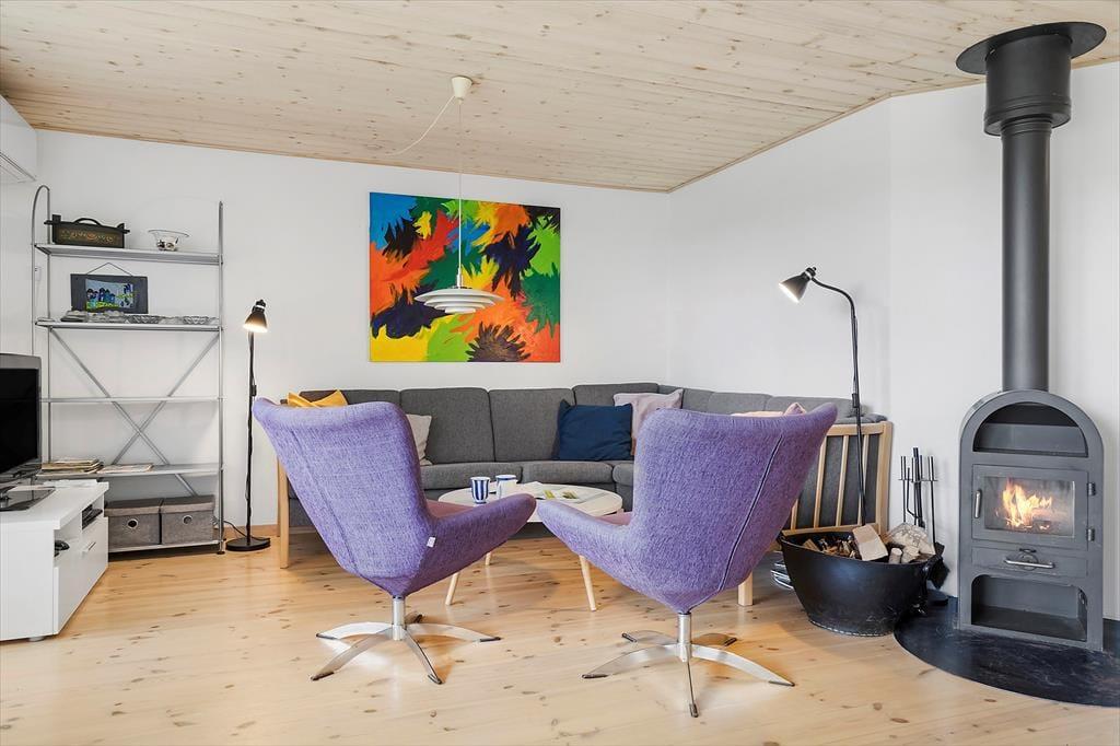 Dieses gemütliche Ferienhaus lädt zu einem komfortablen Urlaub auf Samsø ein. Es bietet Platz für insgesamt 6 Gäste. Sowohl Kinder als auch Erwachsene können sich auf einen entspannten Aufenthalt freuen. Die Küche ist offen gestaltet - eine halbhohe Wand trennt sie vom Esstisch. Du kannst dich also auf einen Barhocker setzen und dich mit denen unterhalten, die das Essen zubereiten. Rund um den Esstisch ist genügend Platz, damit ihr gemeinsam eure Mahlzeiten genießen könnt. Die großen Fenster sorgen für Licht und wenn es draußen schön ist, könnt ihr durch die Terrassentür direkt auf die nach Westen ausgerichtete Terrasse gehen und dort eure Mahlzeiten einnehmen. Mach es dir nach einem erlebnisreichen Tag auf Samsø im Sofa mit einem guten Buch oder bei einem guten Film bequem und entspanne. Hier habt ihr beste Voraussetzungen dafür, dass ihr viele gemütliche Stunden zusammen verbringen könnt. Das Ferienhaus verfügt über drei schöne Schlafzimmer: zwei Zimmer mit Doppelbetten und ein Zimmer mit zwei Einzelbetten. Alle Zimmer bieten Stauraum und Fenster mit Blick in den grünen Garten. Außerdem gibt es im Haus zwei Badezimmer. Im großen Badezimmer kannst du im Whirlpool entspannen und die Sauna nutzen. Besser kann es kaum werden! Der Stil in diesem Haus ist mit hellen Holzverkleidungen an Wänden und Decken sehr gemütlich und vermittelt das Gefühl, nah am Strand und in der Natur zu sein. Hier ist an alles gedacht, was du für einen angenehmen und komfortablen Urlaub benötigst. Freue dich einfach auf eine wundervolle Ferienzeit am Maarup Østerstrand!