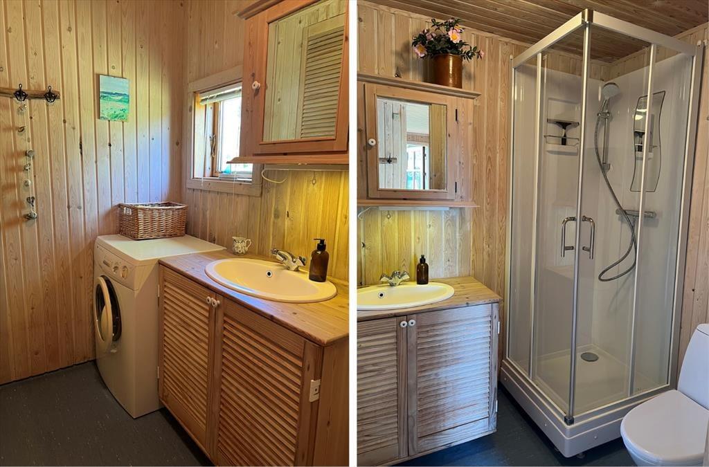 Neben den Schlafräumen befindet sich das Badezimmer mit einer Duschkabine. Mit Ausnahme des Badezimmers ist das gesamte Mietobjekt mit einem Holzfußboden versehen. Das Ferienhaus wird durch eine Luft-zu-Luft-Wärmepumpe beheizt und in kalten Perioden zusätzlich gut durch den Holzofen unterstützt.