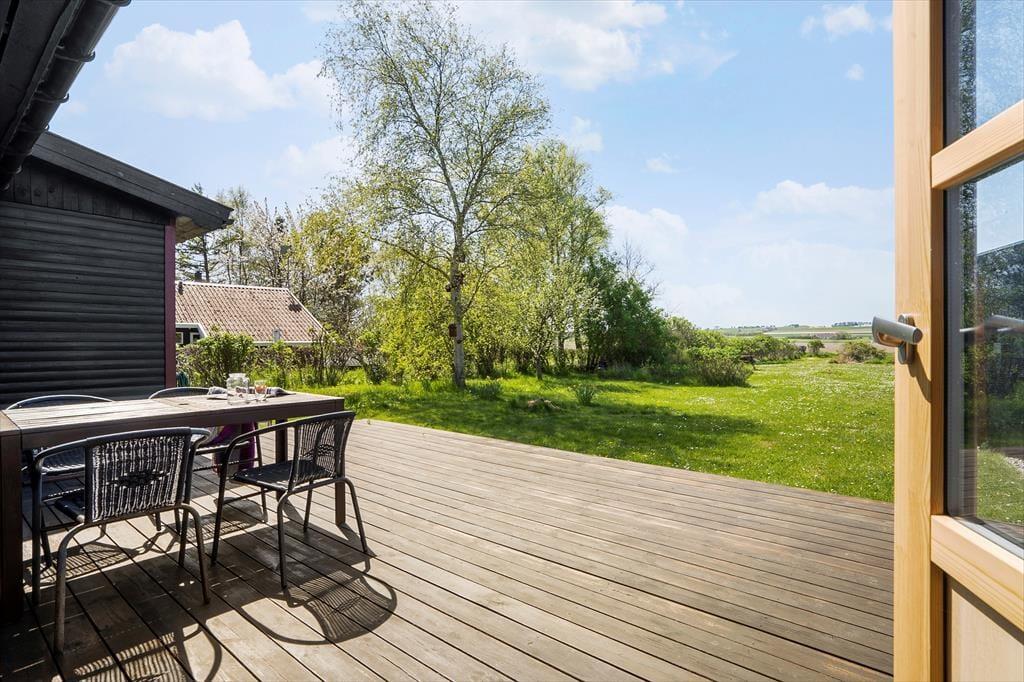 Das Haus liegt am östlichen Ende eines großen Grundstücks. Vor dem Haus ist eine große Grasfläche, auf der Sie nach Westen einen schönen Ausblick genießen. Das Ferienhausgebiet ist friedvoll und ruhig und befindet sich inmitten reizvoller Natur. Nicht selten werden Sie Rehe und Hasen auf Ihrem Grundstück beobachten. Die Grasfläche ist von Büschen und mehreren Birken umrahmt, die Sie auf der Terrasse und im Garten gut abschirmen und dennoch nicht die reizvolle Aussicht einschränken. Die Grundstückseinfahrt bietet Parkmöglichkeiten. Im Garten befindet sich ein Schuppen.