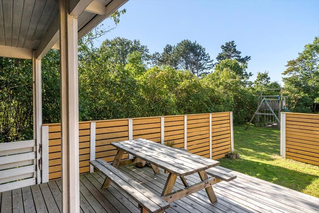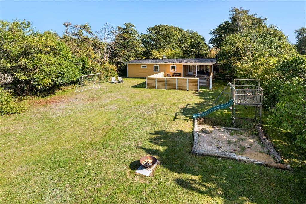 Der große, geschlossene Garten liegt an der Westseite des Hauses. Er überzeugt mit viel Platz für Ballspiele, mit einer Sandkiste und mit Schaukeln. Der Garten wird von Bäumen und Büschen abgeschirmt, sodass Sie stets ein friedvolles Eckchen zum Entspannen finden werden. Allabendlich lädt die Feuerschale zu gemütlichen Runden ein. Ihnen stehen am Ferienhaus zwei Terrassen zur Verfügung. Eine der Terrassen ist von der Küche aus zugänglich und eignet sich perfekt für ein Frühstück unter freiem Himmel. Die zweite Terrasse grenzt an den Wohnraum und ist teilweise überdacht. Sie können daher frei wählen, ob Sie die Sonne oder den kühlen Schatten bevorzugen. Mehrere Gartenmöbel stehen zur Verfügung. Gleiches gilt für einen Grill.