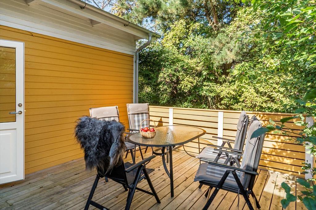 Das ältere, kleine und gemütliche Haus bietet Platz für vier Personen und befindet sich am Mårup Østerstrand im nördlichen Teil Samsøs. Das gelbe Holzhaus eignet sich sehr schön für Urlauber, die Gemütlichkeit suchen und Ihre Urlaubstage gern unter freiem Himmel genießen. Bei Ihrer Ankunft am Haus erblicken Sie zuerst die richtig schöne Holzterrasse mit dem Eingang zur Küche und zum Flur, von dem Sie wiederum weiter in die Schlafzimmer, das Badezimmer und die Küche gelangen. Der im Flur platzierte Schrank verbirgt eine Waschmaschine und einen Wäschetrockner.