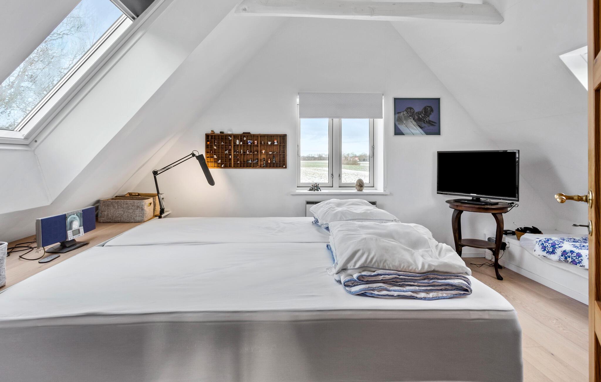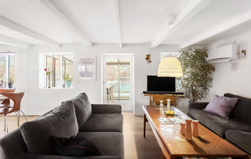 Das Haus liegt in einer ruhigen Umgebung mit Blick auf einen kleinen See. Offene Küche in Verbindung mit dem Wohnzimmer. Das Wohnzimmer ist mit bequemen Möbeln ausgestattet. Von hier aus haben Sie Zugang zu einem kleinen Wintergarten. Das Badezimmer ist mit einer Dusche ausgestattet. Das Haus wird über eine Wärmepumpe und Strom beheizt. Dank Smart-TV, einem Streaming-Dienst und guter Internetverbindung wird es garantiert nicht langweilig und Sie können leicht Filme streamen oder ein Home Office einrichten.