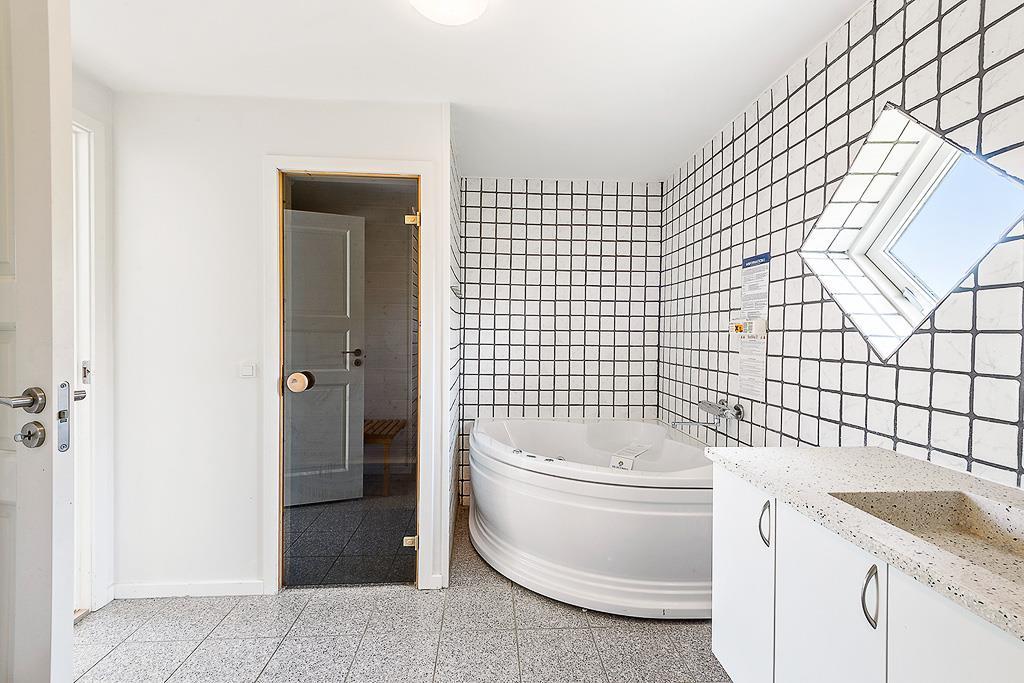 Gepflegtes, schönnes und helles eingerichtes Ferienhaus, mit 2 guten Schlafzimmern mit je einem Doppelbett und schranke. Ein großes und schön eingerichtetes Badezimmer mit WC, Dusche, Sauna und Whirlpool. Küche-Essbereich im Haus ist einer moderne Küche mit einem bar zum Essbereich getrennt. In der Küche gibt es eine Treppe zum 1 stock, wo es zwei Zimmern gibt, dass eine mit 2 Matratzen. Vom Essbereich, kommen Sie zum Wohnzimmer mit Sofagruppe. Von den 2 Schlafzimmern im Erdgeschoss gelangt man auf die schöne Holzterrasse und den Garten mit Gartenmöbeln, Grill, Schaukelgestell und Achterbahn.