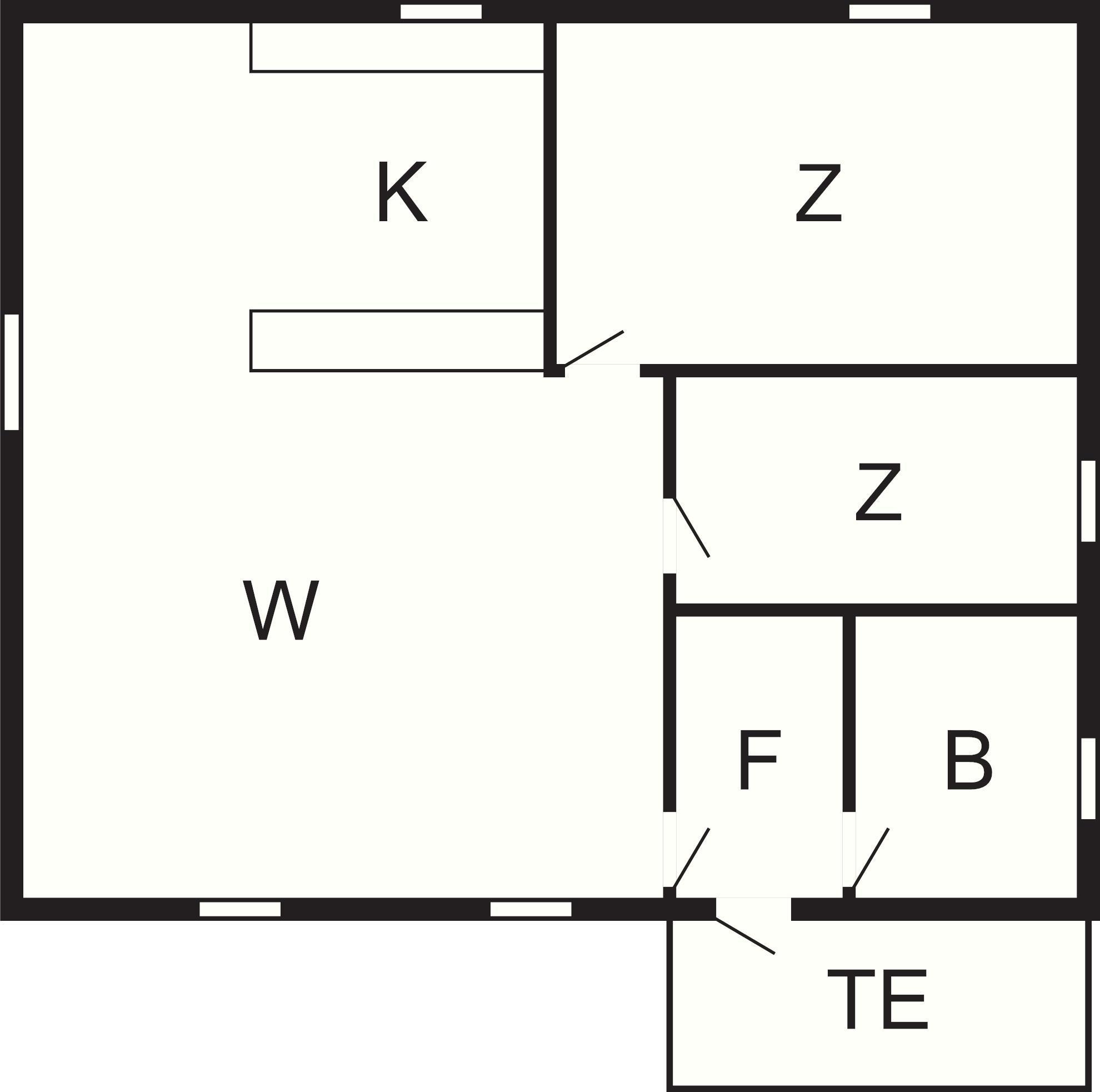 Und: Terrasse, E-Heiz., Spielgeräte, Naturgrundst. m. Bäumen 2600 m2, gemischte Möblierung, Ferienhausgebiet, Nichtraucherhaus