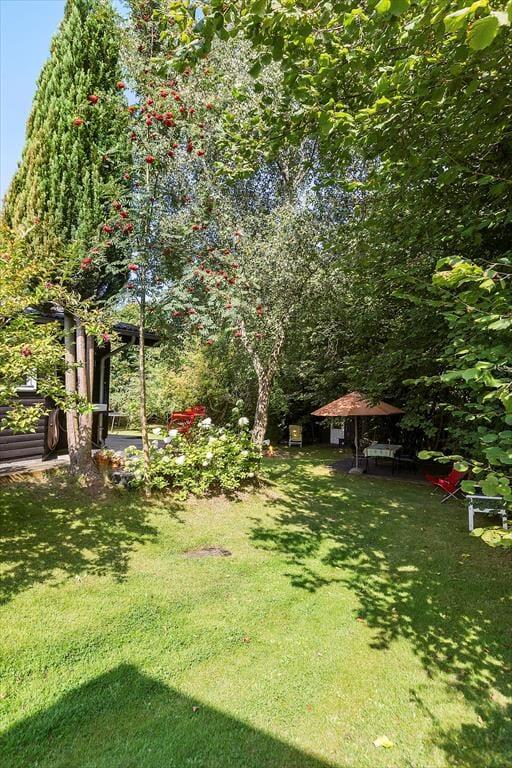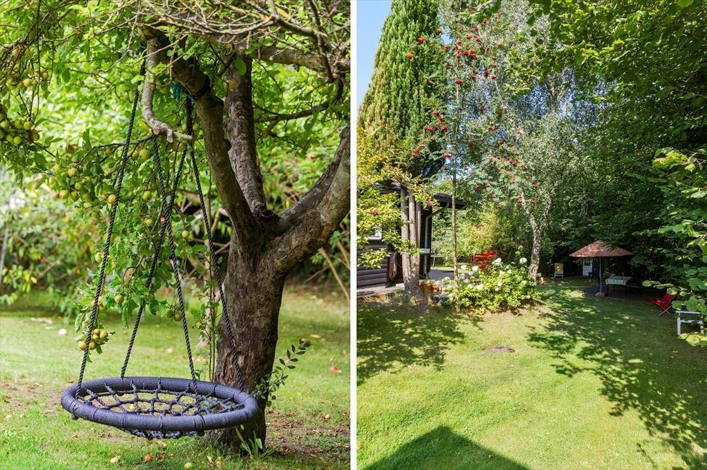 Der Garten ist wunderschön angelegt, und das Haus liegt erhöht auf dem Grundstück, was für Ruhe und Privatsphäre sorgt. Hier kannst du die Natur in vollen Zügen genießen – sei es auf der Terrasse bei einer Tasse Kaffee oder während die Kinder im Garten spielen. Die kleinen Gäste werden sich besonders über das Spielhaus und das Trampolin freuen, die für stundenlangen Spaß sorgen.