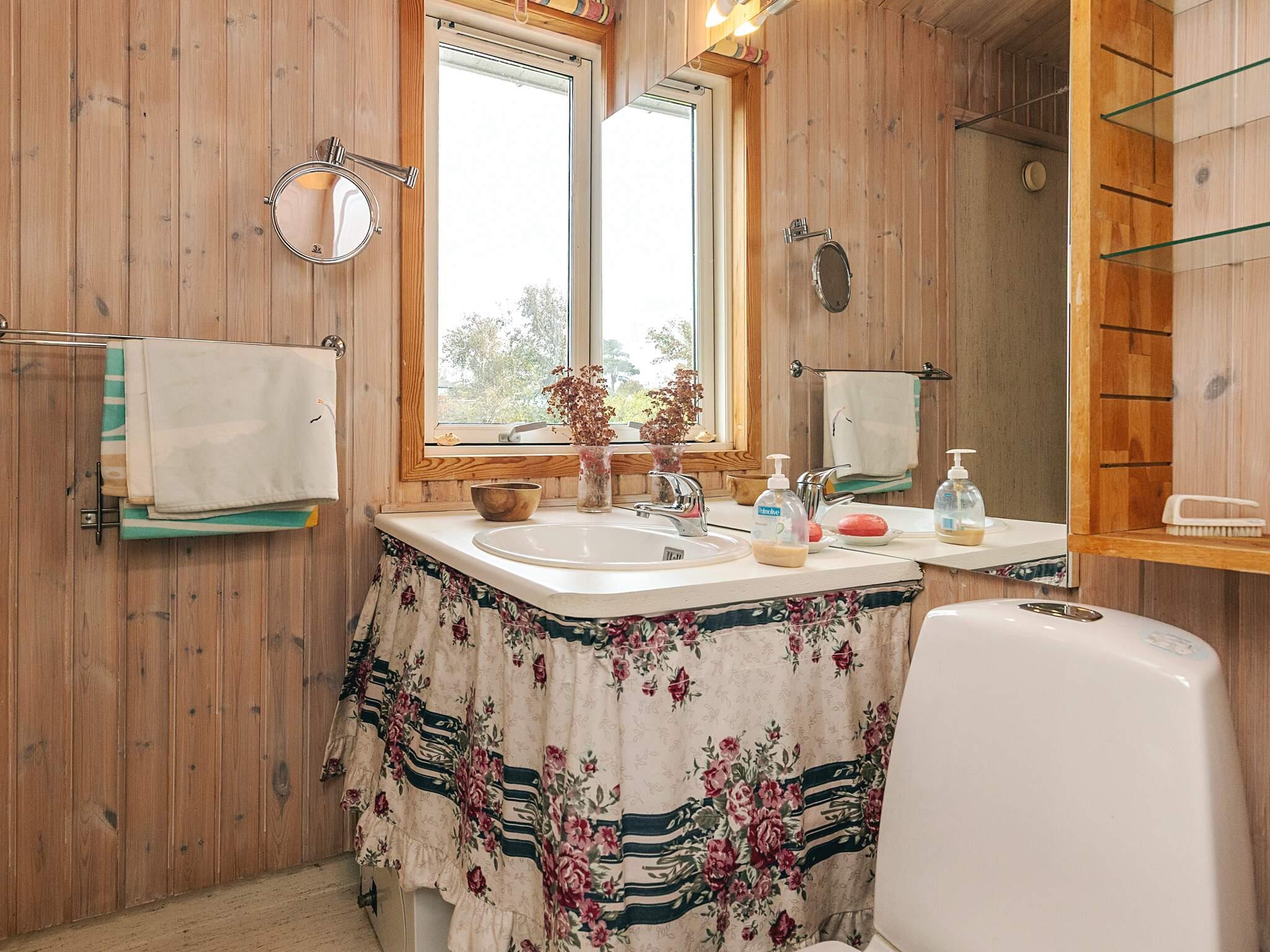 Sommerhuset rummer desuden tre soveværelser, et lille køkken, badeværelse og en fordelingsgang.