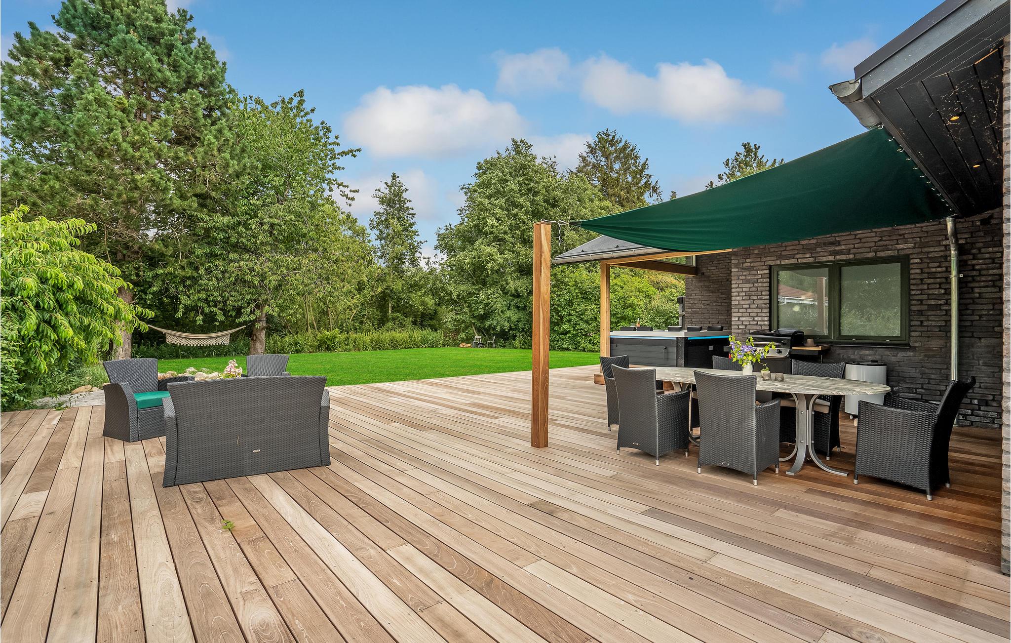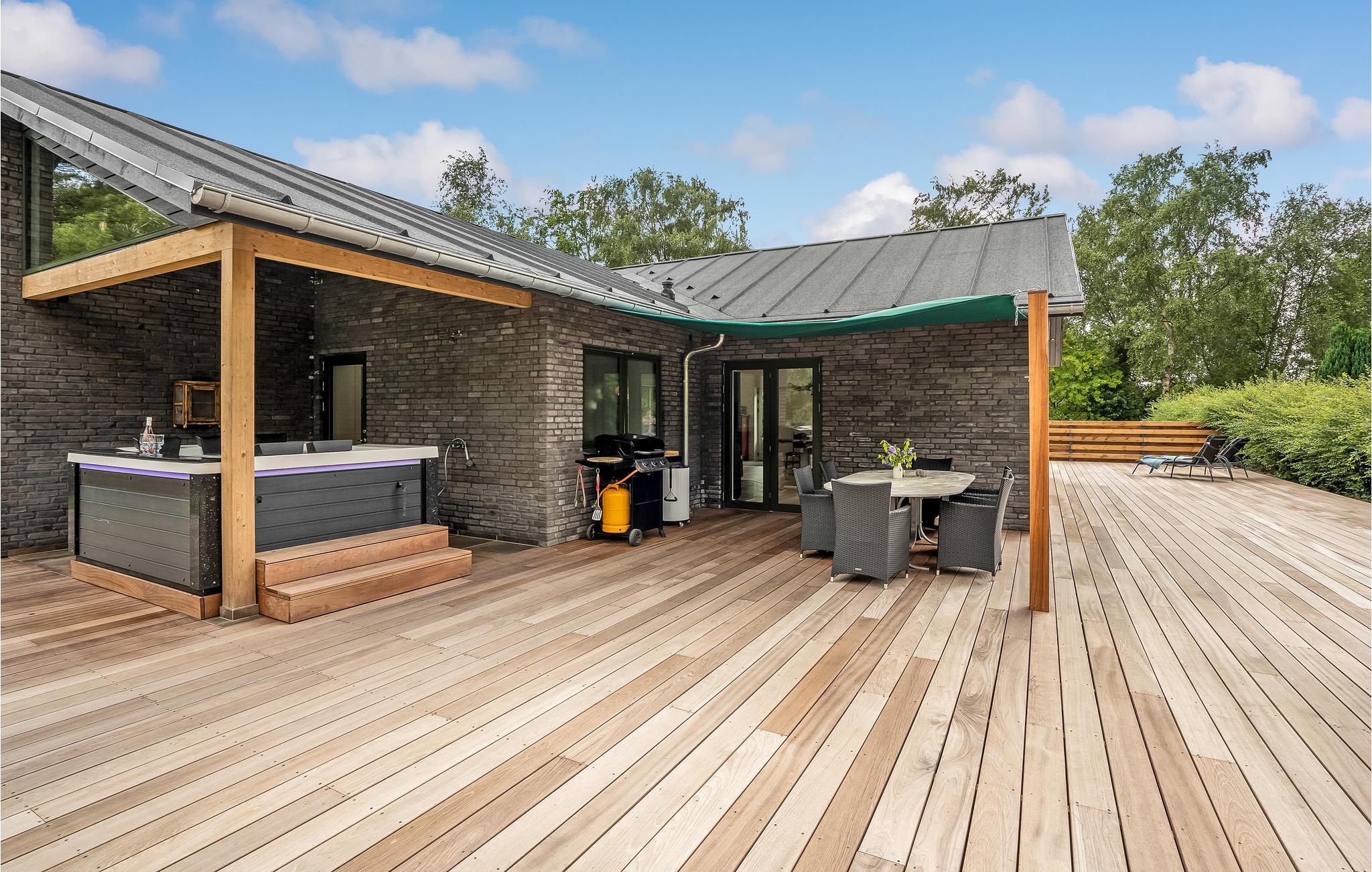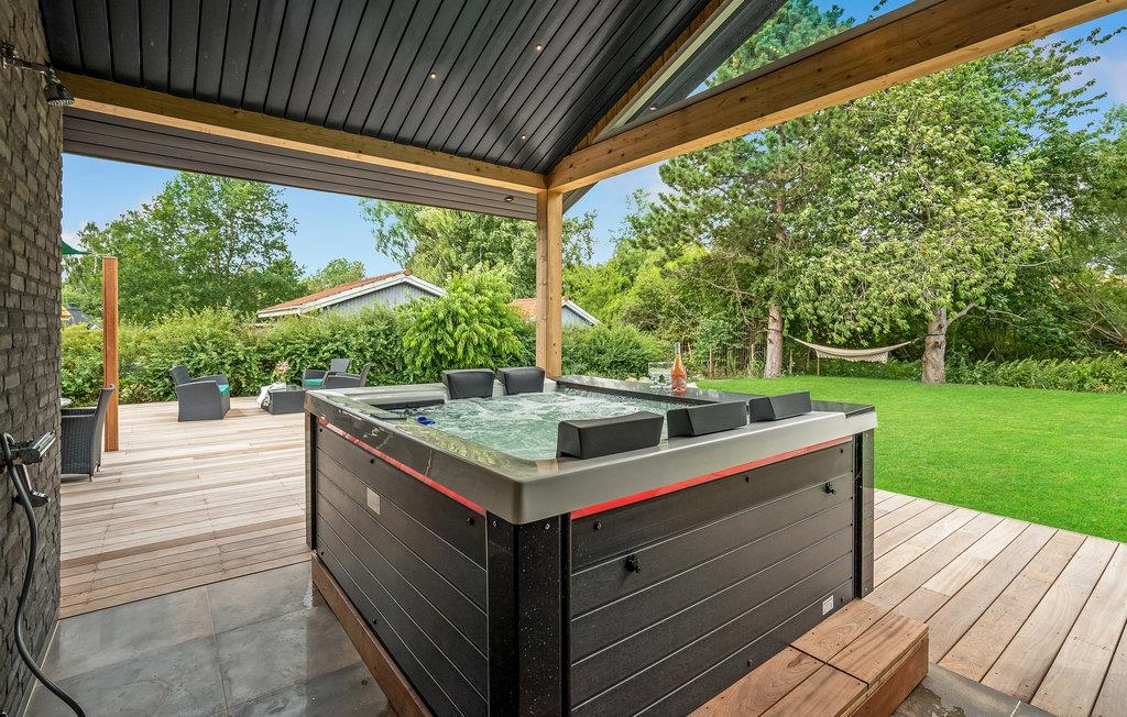 Stilvolles Ferienhaus mit Außenwhirlpool, großzügiger Terrasse und Nähe zum Wasser in ruhiger Naturumgebung.