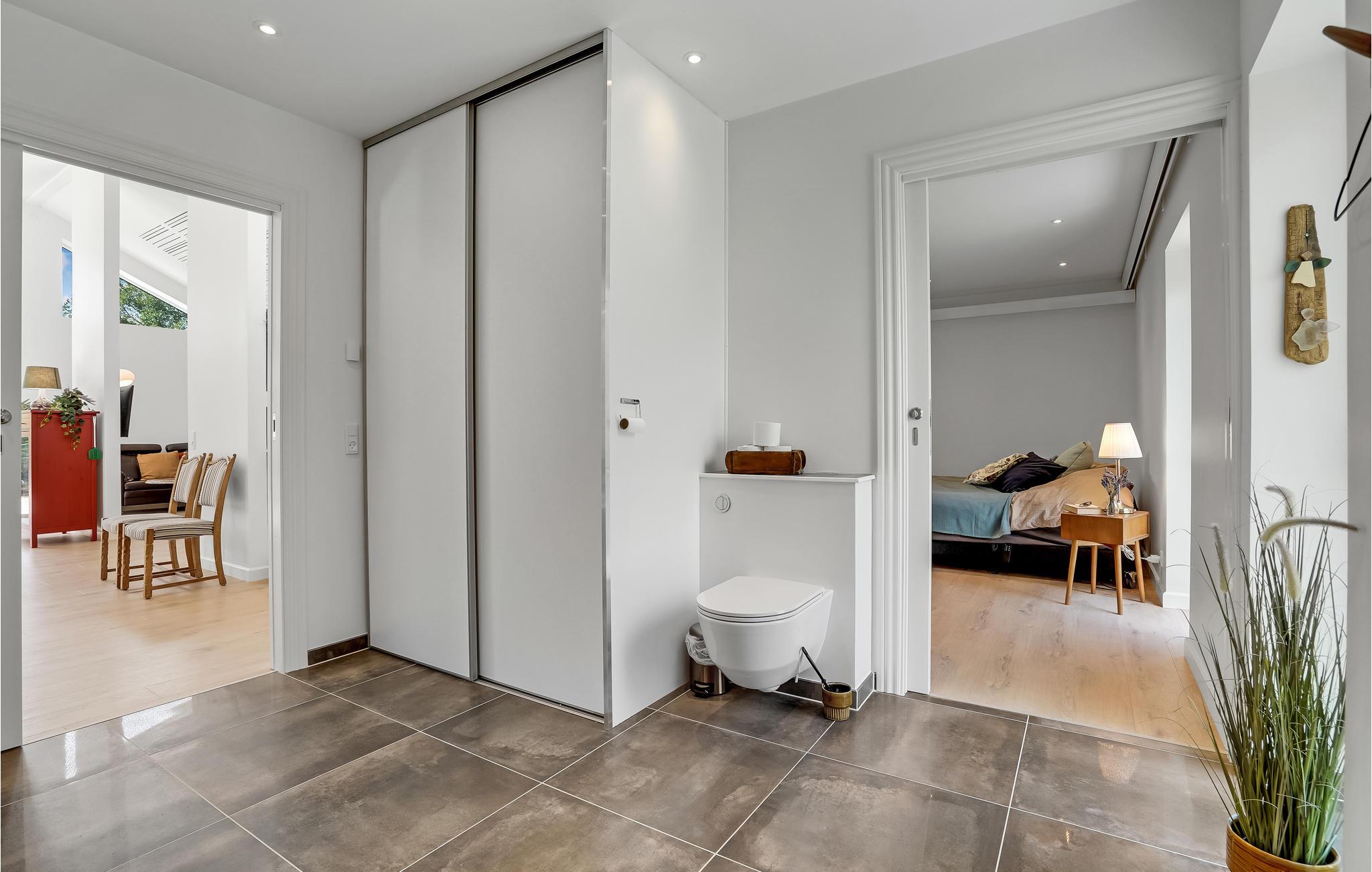 Das Haus ist auch besonders für Rollstuhlfahrer geeignet. Es gibt breite Türen, Rampen zu allen Außentüren, breite Schiebetüren im Inneren, ein geräumiges Badezimmer und einen Aufzug in einem Schlafzimmer, in dem sich auch ein Bett auf Rollen befindet.
