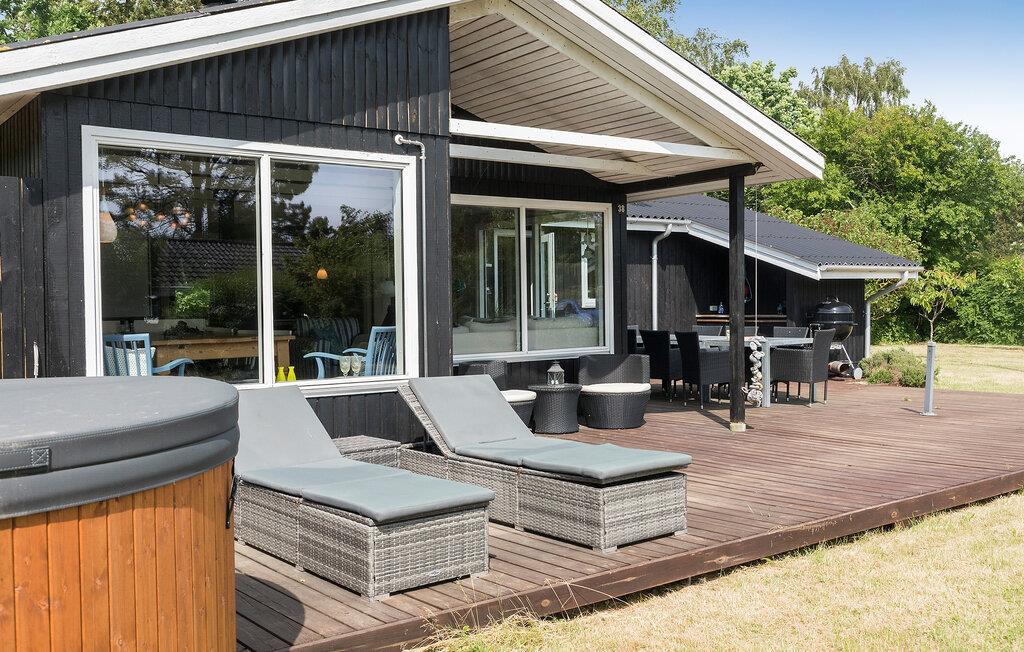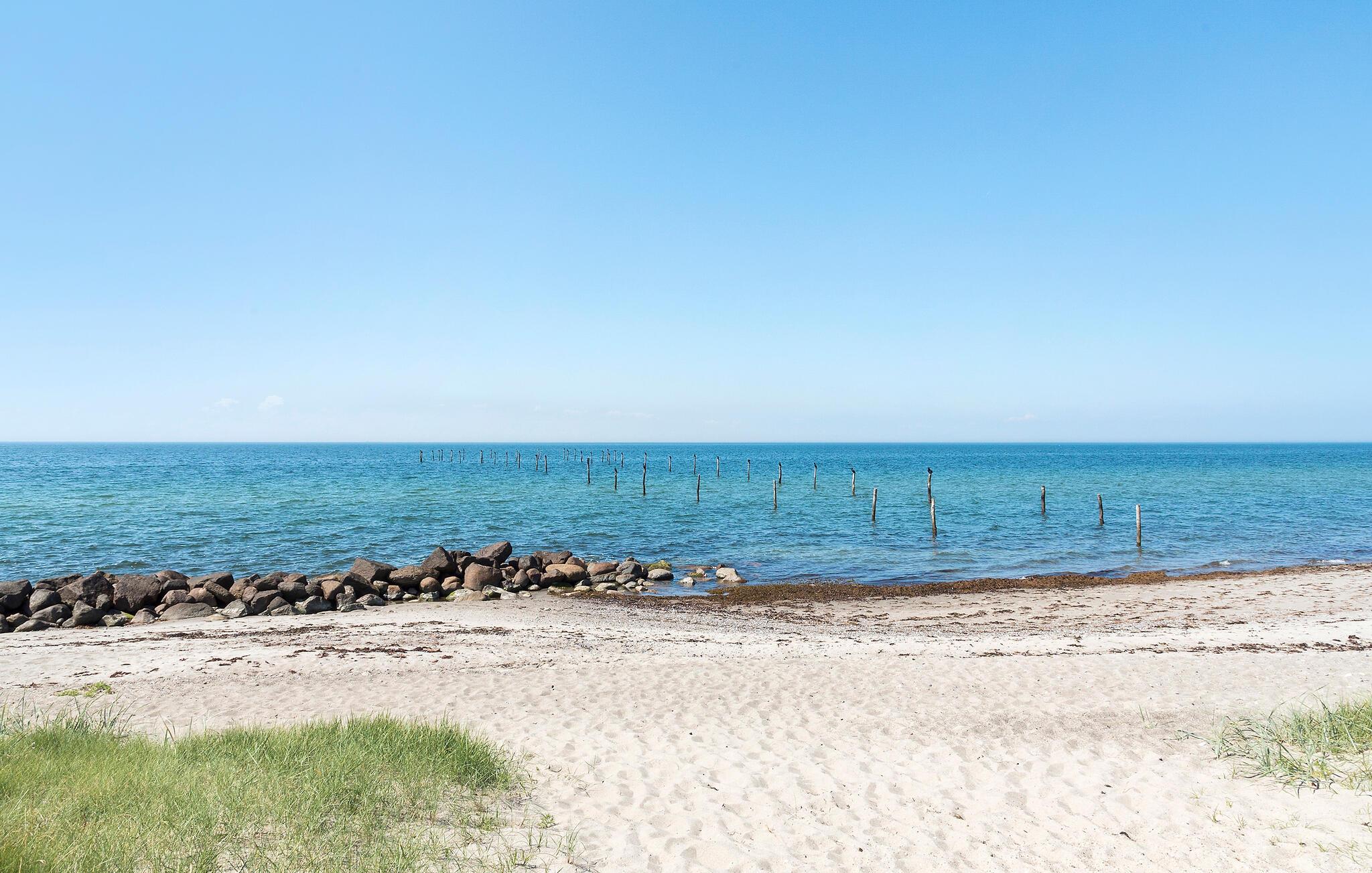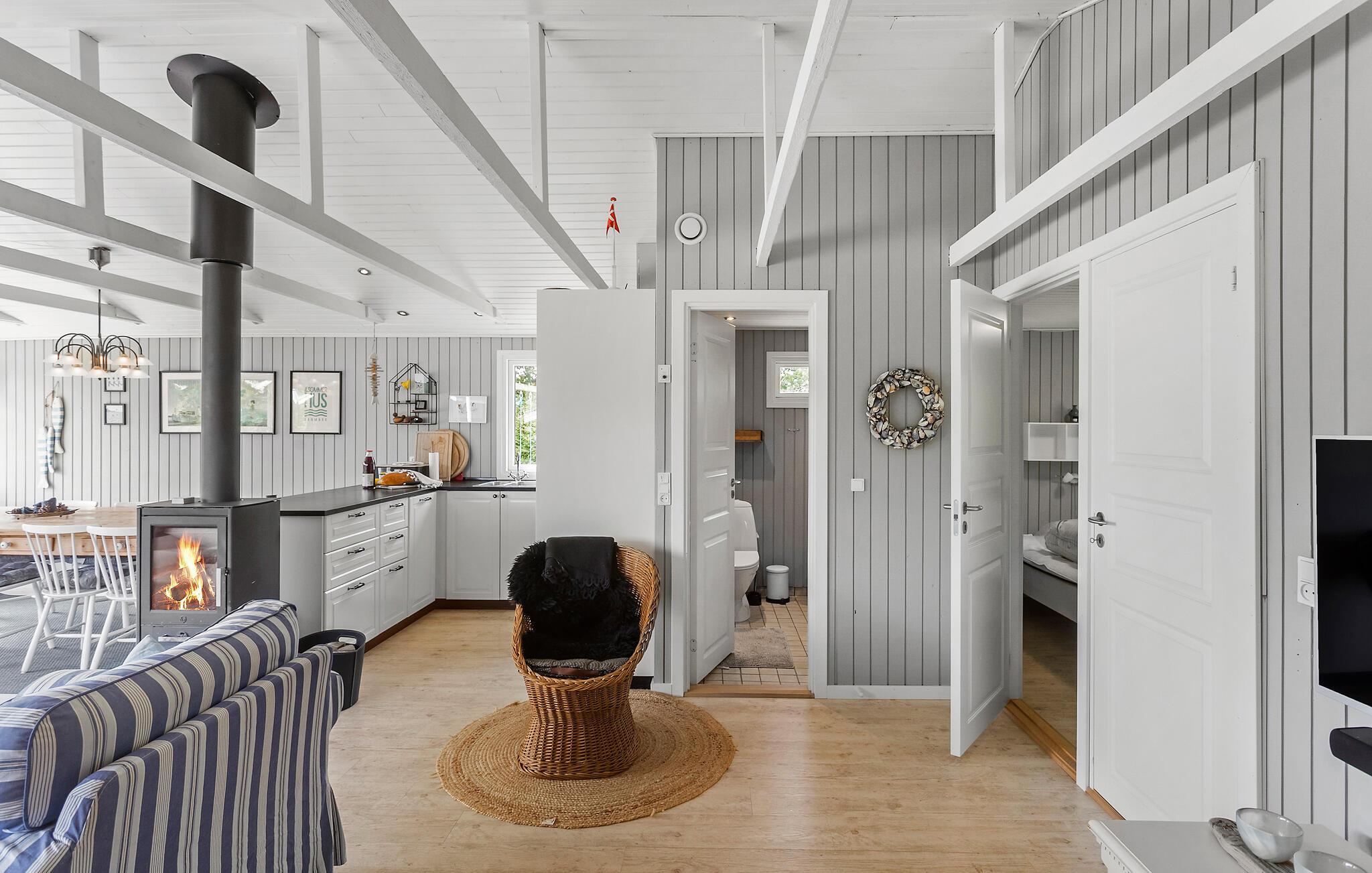 Dieses schöne Ferienhaus liegt am Næsby Strand auf der Insel Lolland. Es hat eine offene Küche, die mit modernen ausgestattet ist und in Verbindung mit dem Ess- und Wohnzimmer mit Kaminofen liegt. Von hier aus haben Sie Zugang zur überdachten Terrasse und zur offenen Terrasse mit hochwertigen Gartenmöbeln. Es gibt auch eine schöne Außenküche mit Waschbecken auf der Terrasse, wo Sie leckere Grillabende vorbereiten und verbringen können. Im Hauswirtschaftsraum steht eine Waschmaschine zur Verfügung. Das Badezimmer mit Dusche hat Fußbodenheizung. Es gibt 3 Schlafzimmer mit guten Betten und Stauraum. Das Haus wird über eine Wärmepumpe beheizt.