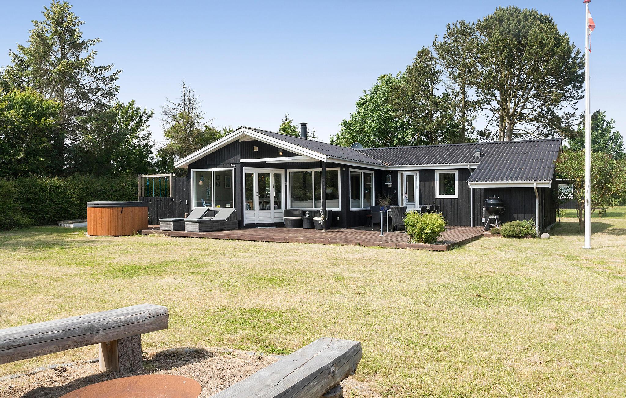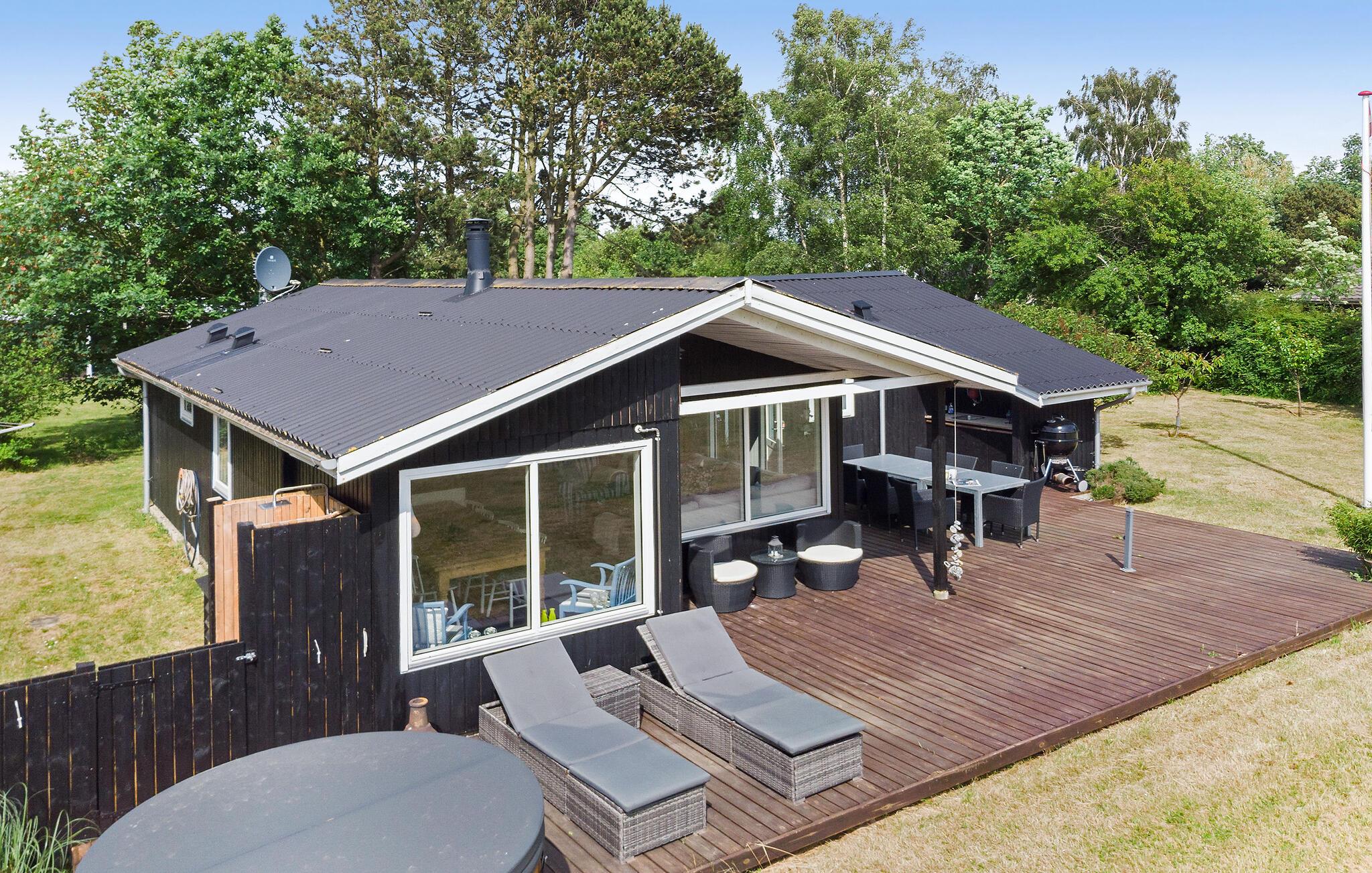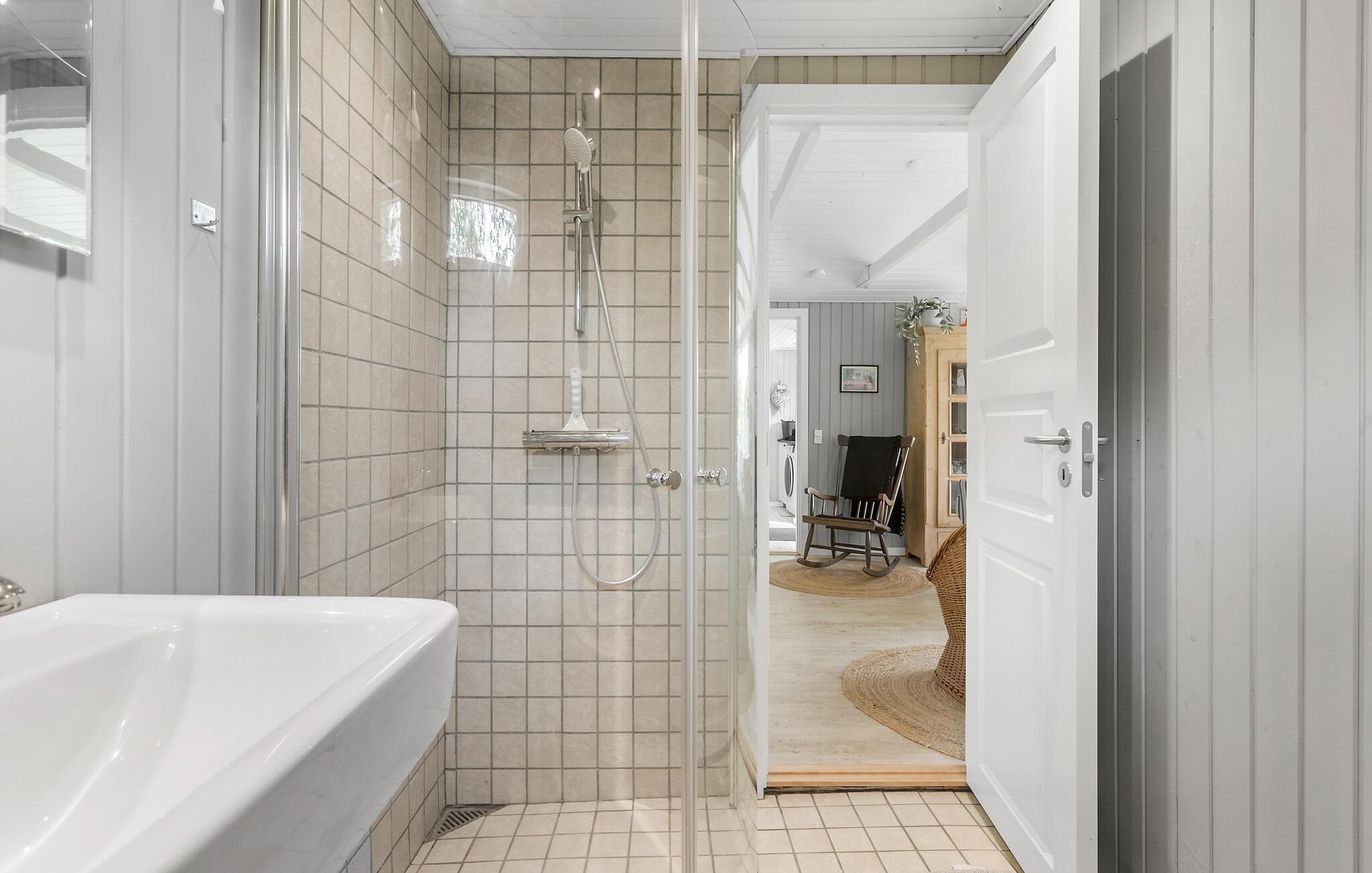 Dieses schöne Ferienhaus liegt am Næsby Strand auf der Insel Lolland. Es hat eine offene Küche, die mit modernen ausgestattet ist und in Verbindung mit dem Ess- und Wohnzimmer mit Kaminofen liegt. Von hier aus haben Sie Zugang zur überdachten Terrasse und zur offenen Terrasse mit hochwertigen Gartenmöbeln. Es gibt auch eine schöne Außenküche mit Waschbecken auf der Terrasse, wo Sie leckere Grillabende vorbereiten und verbringen können. Im Hauswirtschaftsraum steht eine Waschmaschine zur Verfügung. Das Badezimmer mit Dusche hat Fußbodenheizung. Es gibt 3 Schlafzimmer mit guten Betten und Stauraum. Das Haus wird über eine Wärmepumpe beheizt.