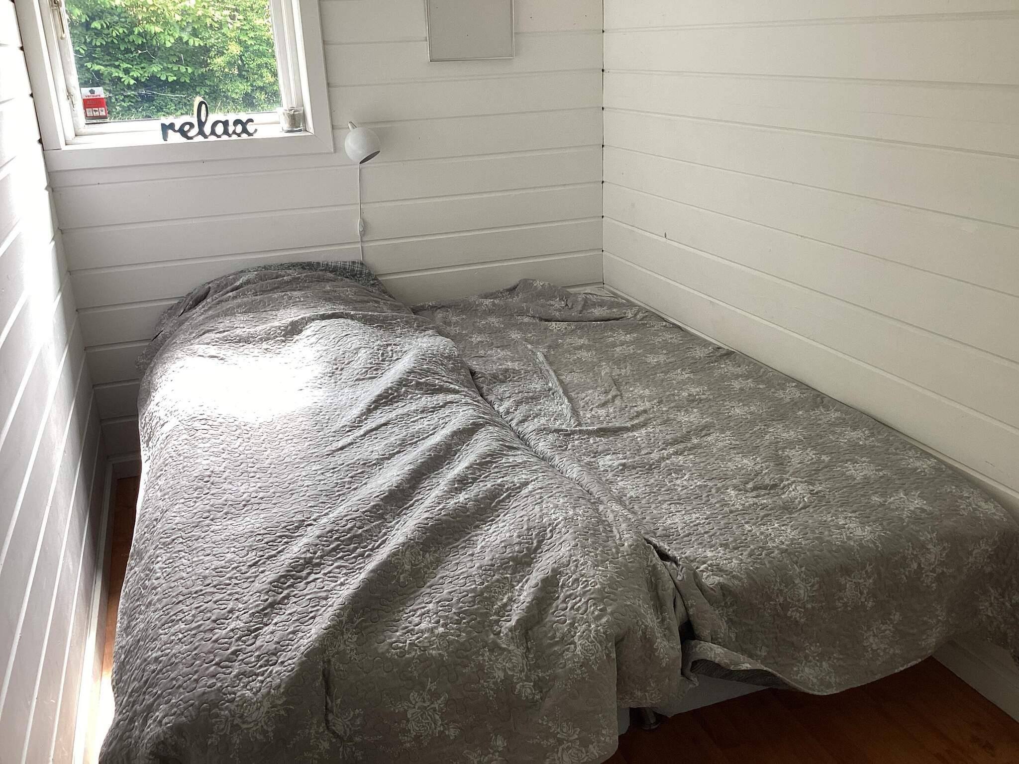 Im Haus befinden sich drei Schlafzimmer; eines mit Doppelbett, eines mit zwei Einzelbetten und ein 3. mit einem Einzelbett. Die offene Küche ist gut ausgestattet und verfügt unter anderem über einen Gasherd, eine Kaffeemaschine, eine Mikrowelle, einen Geschirrspüler und einen Gefrierschrank. Das Wohnzimmer verfügt über eine Wärmepumpe und einen Holzofen, einen Fernseher mit Chromecast und WLAN. Das Badezimmer ist mit Toilette, Waschbecken und Dusche ausgestattet. Vom Wohnzimmer aus haben Sie Zugang zur Terrasse und zum Garten.