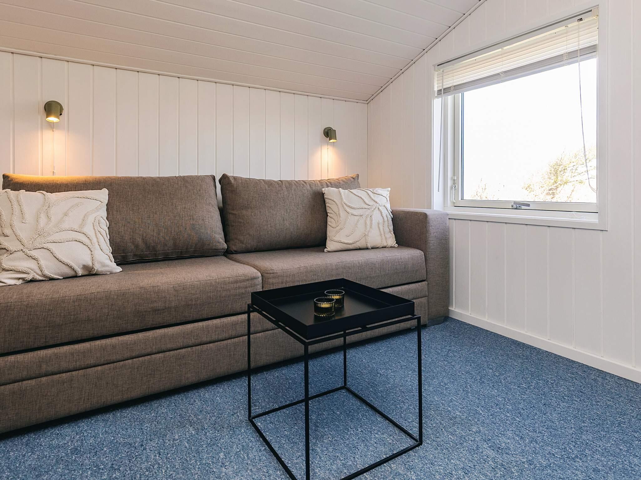 Vom Eingangsbereich aus gelangt man in ein gemütliches, helles Wohnzimmer mit echter Sommerhausatmosphäre. Dieses ist mit der Küche verbunden, in der die Familie Platz zum Fernsehen oder Spielen am Esstisch hat. Außerdem gibt es Zugang zu einem Dachboden, auf dem Kinder spielen können. Das Wohnzimmer verfügt außerdem über einen Holzofen für kühle Frühlings- und Herbsttage.