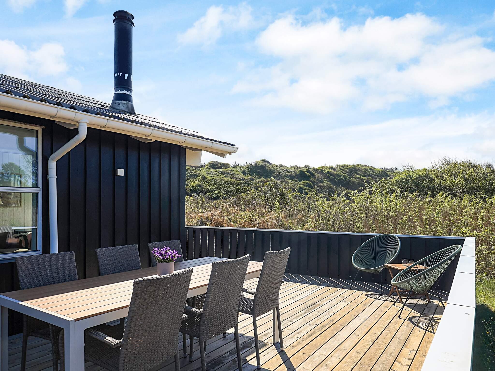 Das Haus liegt auf einem offenen Dünengrundstück mit schöner Aussicht über die Umgebung sowie die Binnendünen und Pferdekoppeln.