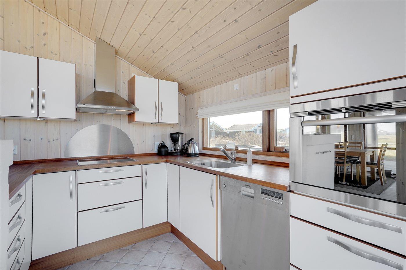 Die Küche ist mit Kühlschrank ausgestattet. Außerdem gibt es 4 Keramik-Kochfelder, Minibackofen, Umluftofen sowie Geschirrspüler.