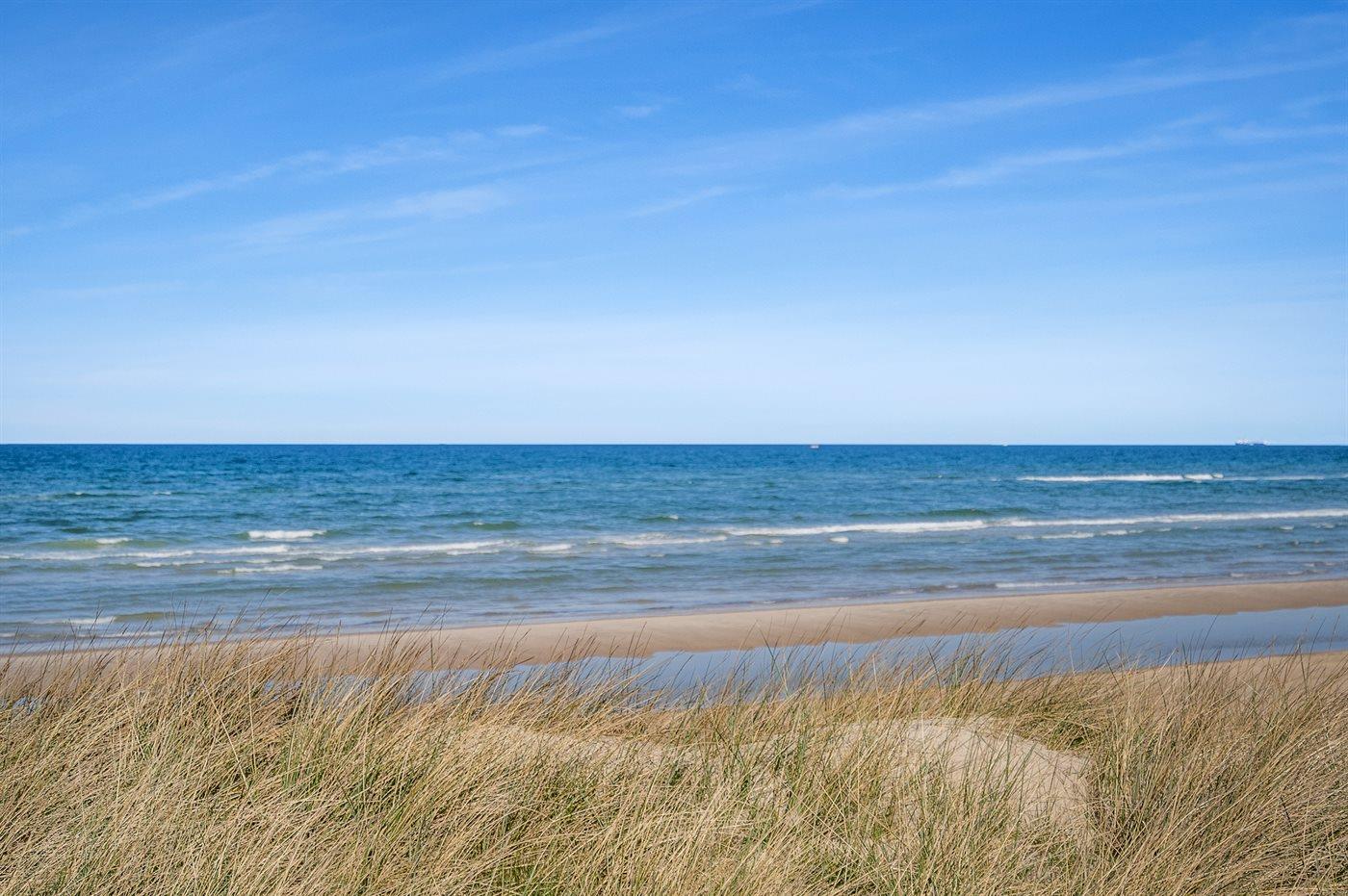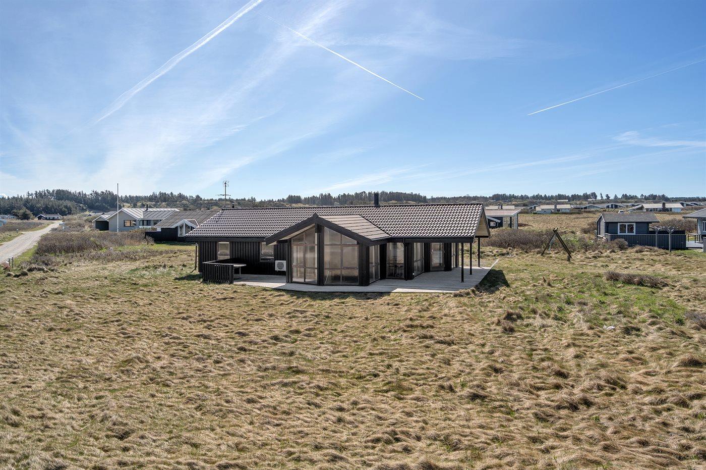 Erleben Sie ein modernes Ferienhaus mit Meerblick und Whirlpool in Hjørring, nur 150 m vom Strand entfernt.