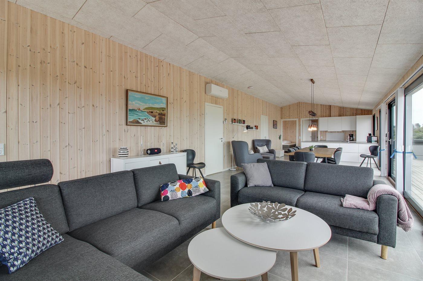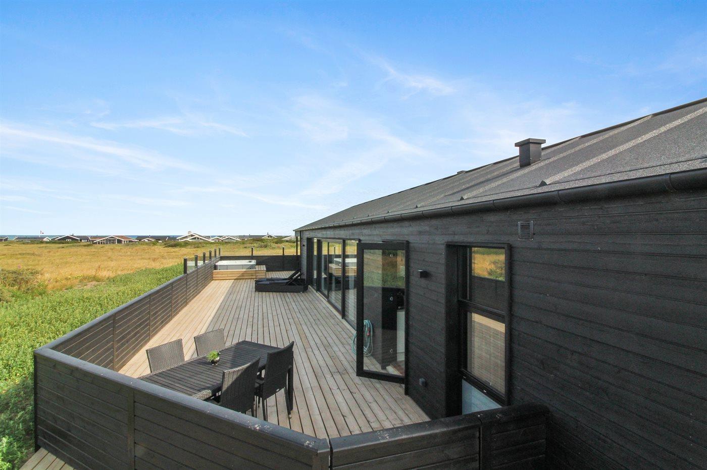 Modernes Ferienhaus mit Meerblick, Whirlpool, Fußbodenheizung und Elektroauto-Ladestation in Hjørring.