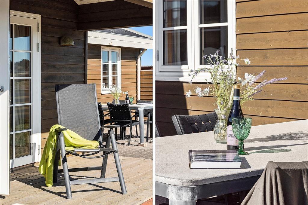 Im Inneren strahlt das Ferienhaus klassische Ferienhausidylle mit echter Blockhaus-Charme und einer warmen, einladenden Atmosphäre aus. Das Wohnzimmer verfügt über große Fenster, die viel Tageslicht hereinlassen und einen Blick auf die Nordsee nach Westen bieten, sodass Sie die Sonnenuntergänge bequem vom Sofa oder vom knisternden Kaminofen aus genießen können. Die offene und moderne Küche ist gut ausgestattet und lädt zu entspannten Mahlzeiten im Urlaubsrhythmus ein. Natürliche Materialien und sorgfältig ausgewählte Details schaffen ein authentisches und entspanntes Ambiente, in dem Sie sich sofort wie zu Hause fühlen. Nach einem Strandbesuch können Sie zum Beispiel eine Pause mit Kaffee und Kuchen im beliebten Café HAVS in Nørlev einlegen – nur einen Steinwurf vom Ferienhaus entfernt.