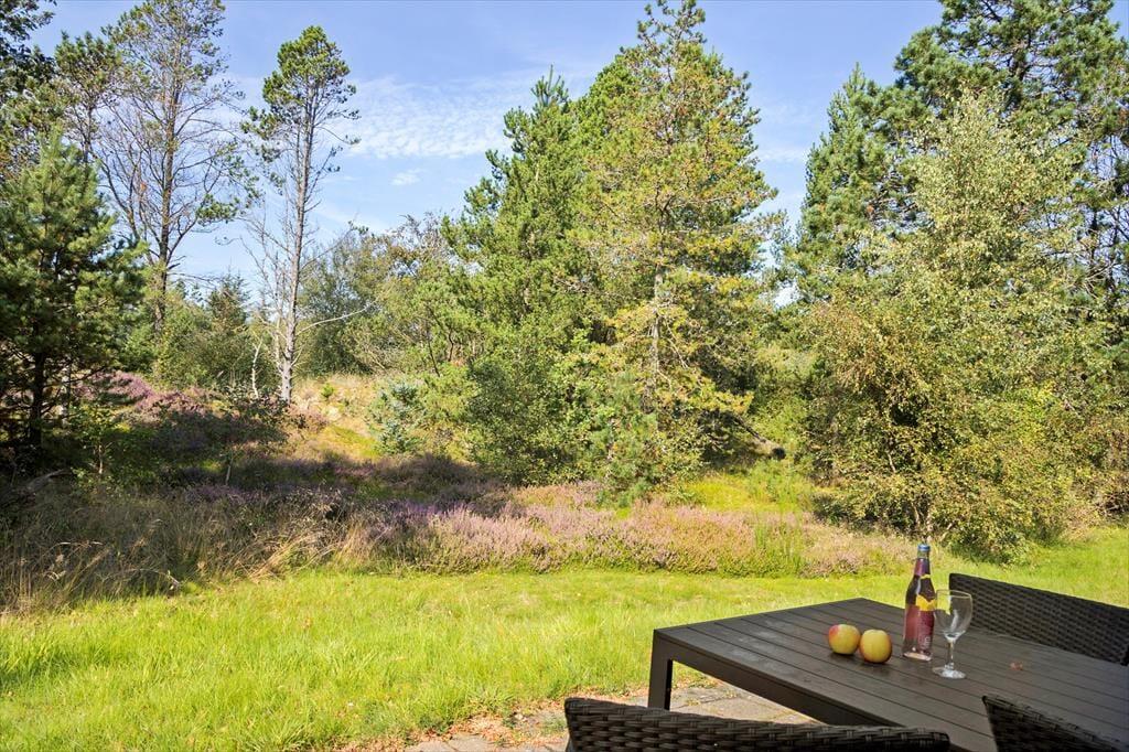 Die Außenbereiche sind mindestens genauso einladend wie das Haus selbst. Auf dem großen Naturgrundstück kannst du dem Wind in den Baumwipfeln und dem Vogelgezwitscher lauschen, während du deinen Morgenkaffee in der Sonne genießt oder ein Buch im Schatten unter dem Sonnenschirm liest. Mehrere Terrassen machen es leicht, genau die richtige Ecke zu finden – ganz gleich, ob du sonnenbaden, mit den Kindern draußen aktiv sein oder gemütliche Grillabende unter dem Sternenhimmel verbringen möchtest. Die ruhige Umgebung erleichtert es, abzuschalten – und es gibt reichlich Platz zum Spielen, Ballspielen oder einfach fürs Zusammensein. Ob du den Tag mit einem Sprung ins Meer beginnen oder mit einem Glas Wein im Whirlpool beenden möchtest – dieses Ferienhaus bietet die idealen Voraussetzungen dafür.