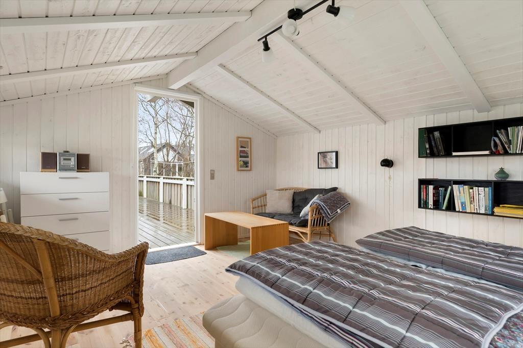 Die Terrasse des Ferienhauses lädt zum Entspannen unter freiem Himmel ein – genießen Sie Ihren Morgenkaffee in den ersten Sonnenstrahlen oder heizen Sie den Grill an und essen Sie Ihr Abendessen im Freien. Nach einem erfrischenden Bad im Meer können Sie das Salz in der herrlichen Außendusche abspülen, bevor Sie sich zurücklehnen und die ruhige Umgebung genießen. Das Naturgrundstück bietet zahlreiche Möglichkeiten zur Erholung, und dank der kurzen Entfernung zum Strand können Sie jederzeit spontan ins Wasser springen oder mit den Kindern Sandburgen bauen.
