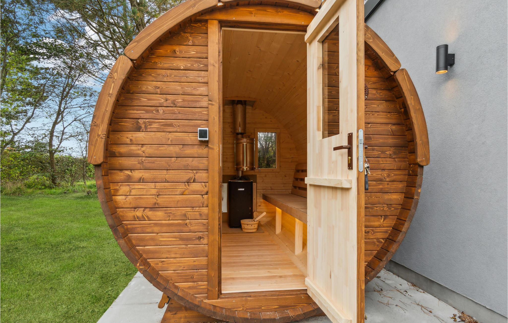 Alles was Sie für Ihren komfortablen Urlaub brauchen, finden Sie hier vor. Packen Sie nur noch Ihre Großfamilie ein und beziehen dieses gut geschnittene Ferienhaus. Hier finden Sie alle zur Ruhe und können Ihren Alltag hinter sich lassen. Der Poolbereich mit separatem Kinderpool verspricht stundenlangen Badespaß unabhängig vom Wetter. Im hübschen Wohnraum mit moderner Küche können Sie gemeinsam Ihre Lieblingsspeisen zubereiten und am Esstisch einnehmen. Auch die überdachte Terrasse eignet sich hervorragend dazu. Beenden Sie das Frühstück im Freien, während Ihre Kinder auf dem Trampolin in luftige Höhen springen und sich auf dem Spielturm vergnügen. Planen Sie auch Saunaabende mit der ganzen Familie, die in der Fasssauna Platz finden und entspannen sich beim Schwitzen.