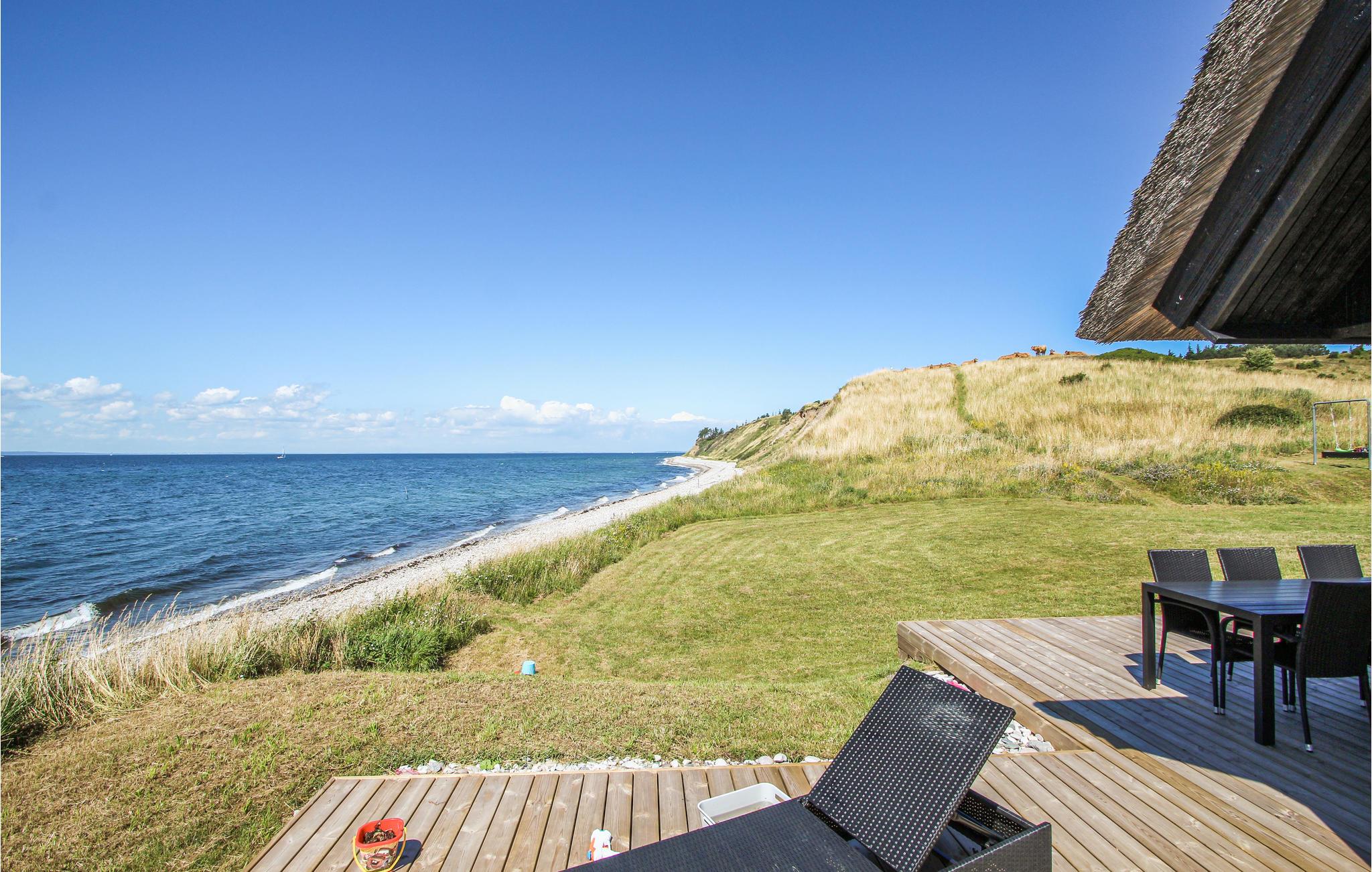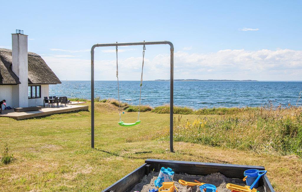 Kinderfreundliches Ferienhaus mit Meerblick und Sauna auf Samsø, ideal für Familien und Naturliebhaber.